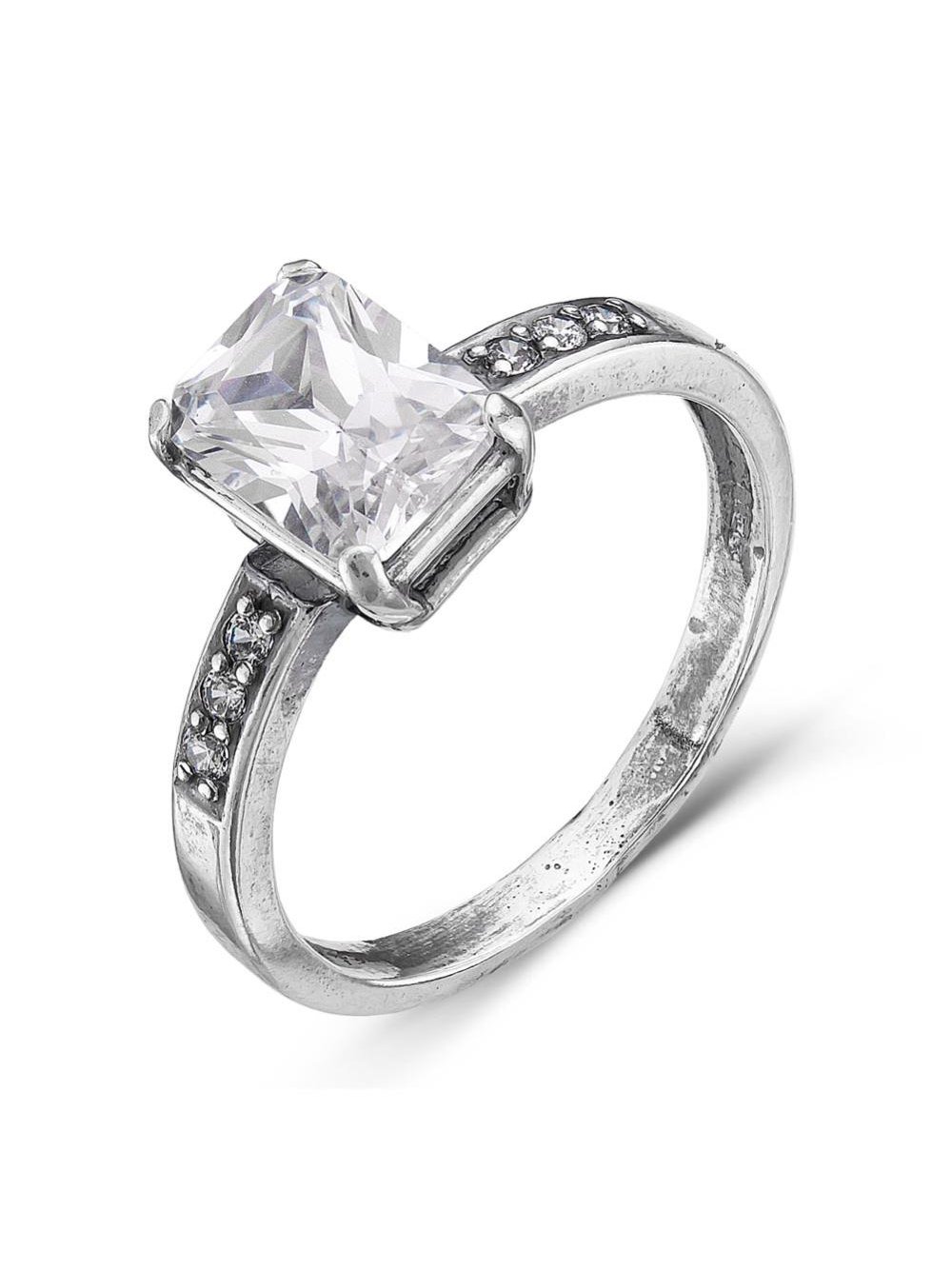 Кольцо бижутерия, покрытие - серебрение с оксидированием, вставка - стекло ювелирное preciosa, фианит (недрагоценный камень)