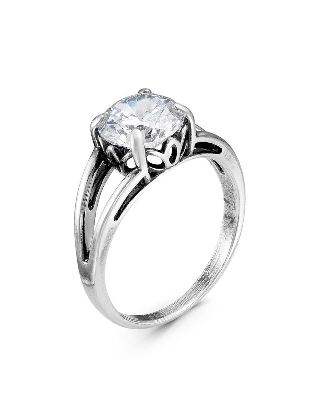 Кольцо бижутерия, покрытие - серебрение с оксидированием, вставка - фианит (недрагоценный камень)