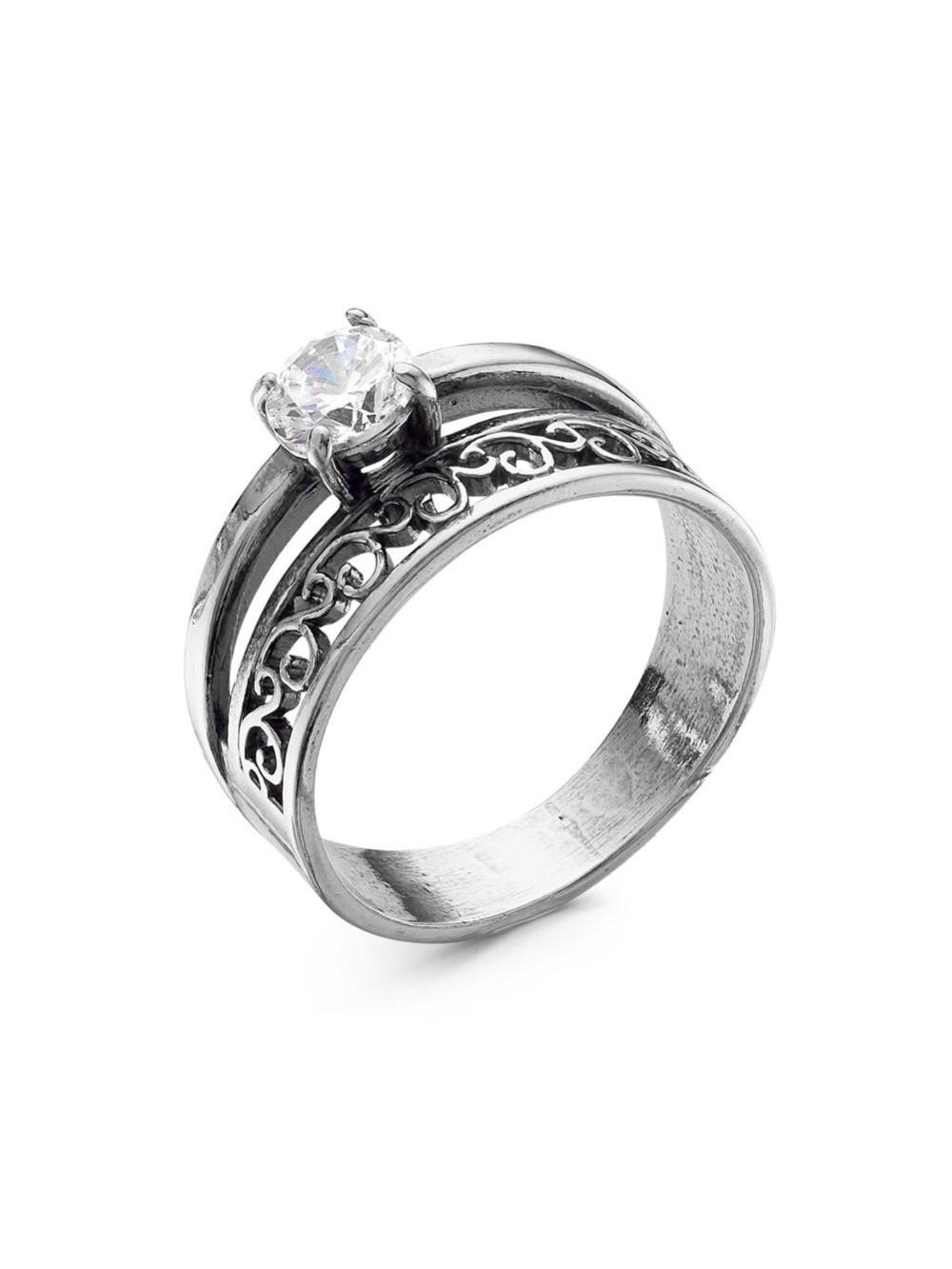 Кольцо бижутерия, покрытие - серебрение с оксидированием, вставка - фианит (недрагоценный камень)