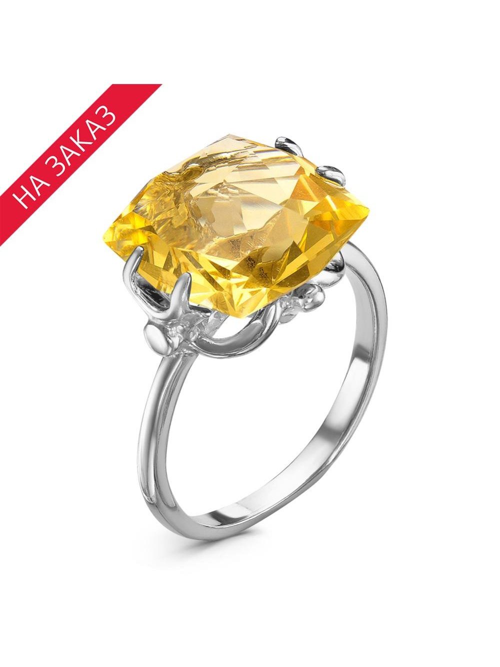 -Кольцо серебро 925 пробы, покрытие - родирование, вставка - искусственный золотистый топаз