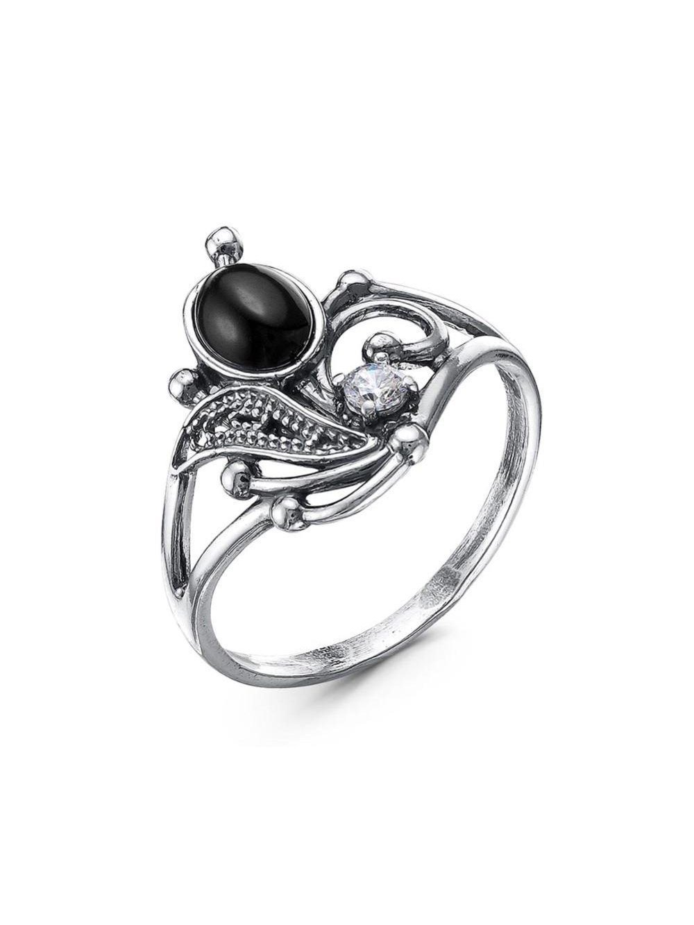 Кольцо серебро 925 пробы, покрытие - оксидирование, вставка - искусственный агат черный, фианит (недрагоценный камень)