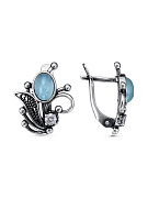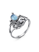 Кольцо серебро 925 пробы, покрытие - оксидирование, вставка - искусственный халцедон, фианит (недрагоценный камень)