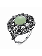 Кольцо серебро 925 пробы, покрытие - оксидирование, вставка - искусственный нефрит