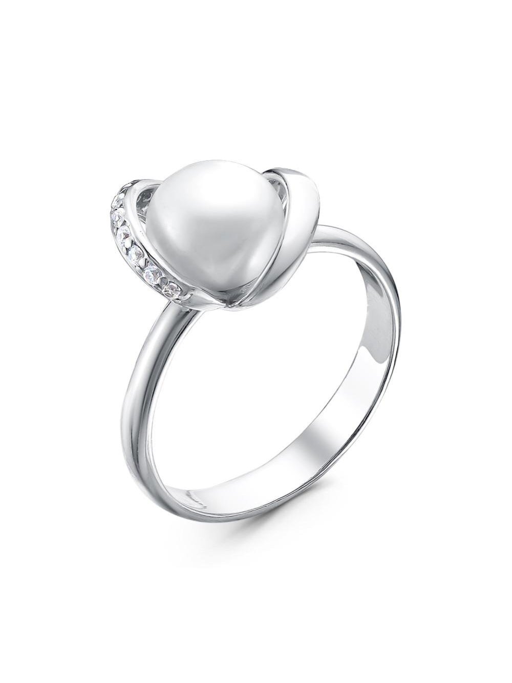 Кольцо серебро 925 пробы, покрытие - родирование, вставка - культивированный жемчуг, фианит (недрагоценный камень)