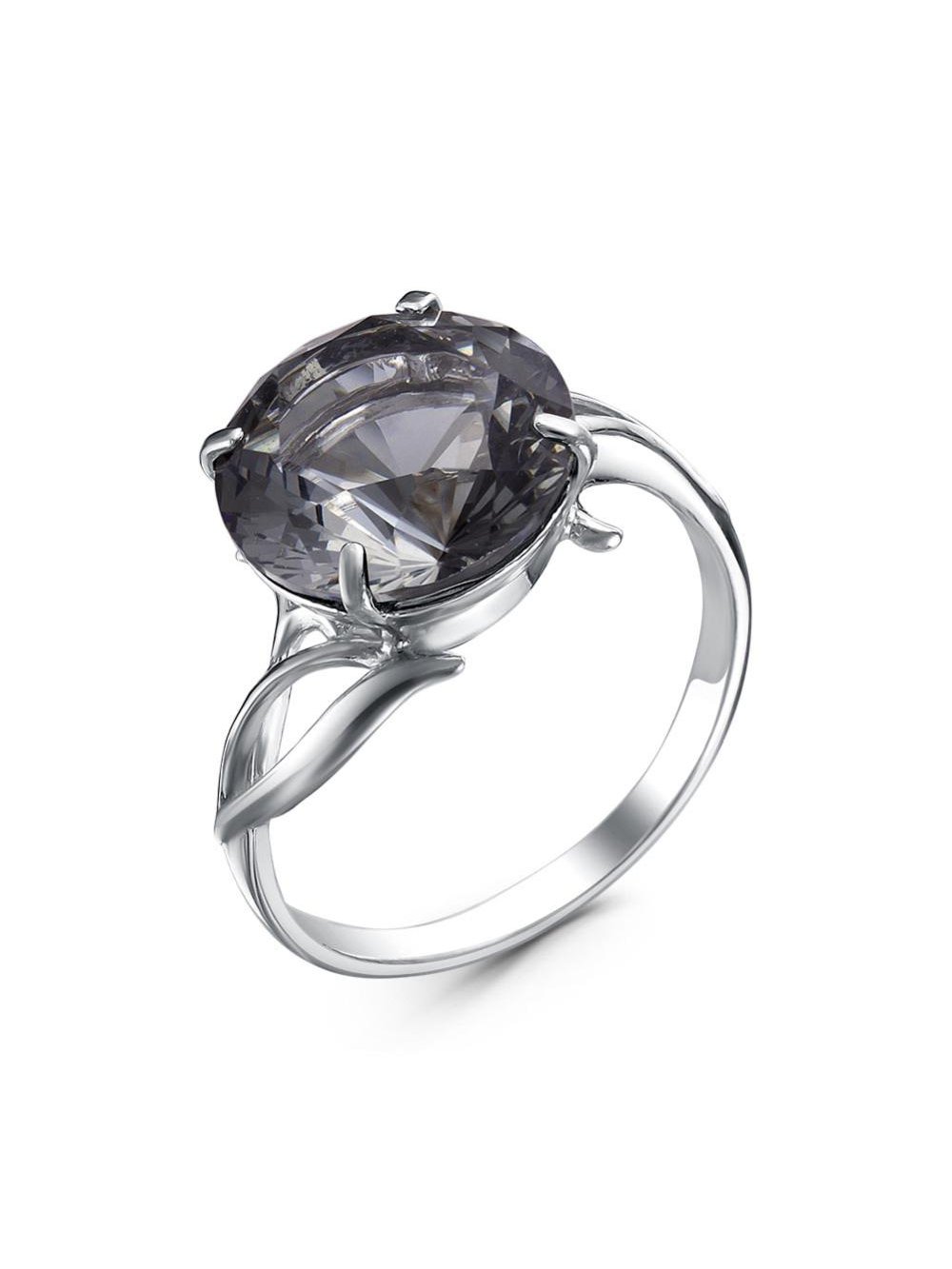 Кольцо серебро 925 пробы, покрытие - родирование, вставка - искусственный дымчатый кварц