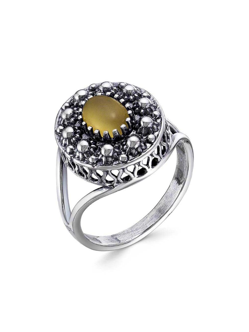 Кольцо бижутерия, покрытие - серебрение с оксидированием, вставка - искусственный кошачий глаз