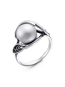 Кольцо серебро 925 пробы, покрытие - оксидирование, вставка - культивированный жемчуг