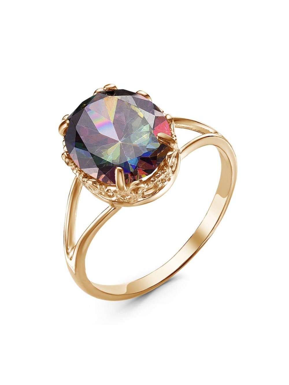 Кольцо бижутерия, покрытие - золочение, вставка - фианит (недрагоценный камень)