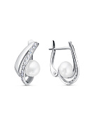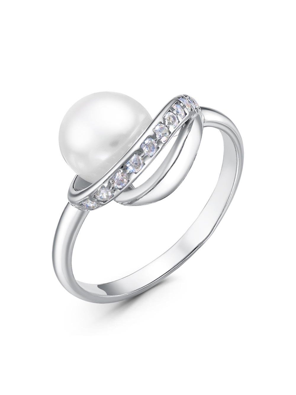 Кольцо серебро 925 пробы, покрытие - родирование, вставка - культивированный жемчуг, фианит (недрагоценный камень)