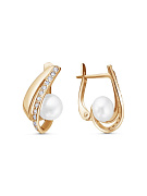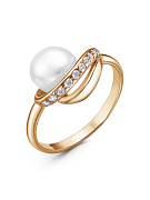 Кольцо серебро 925 пробы, покрытие - золочение, вставка - культивированный жемчуг, фианит (недрагоценный камень)