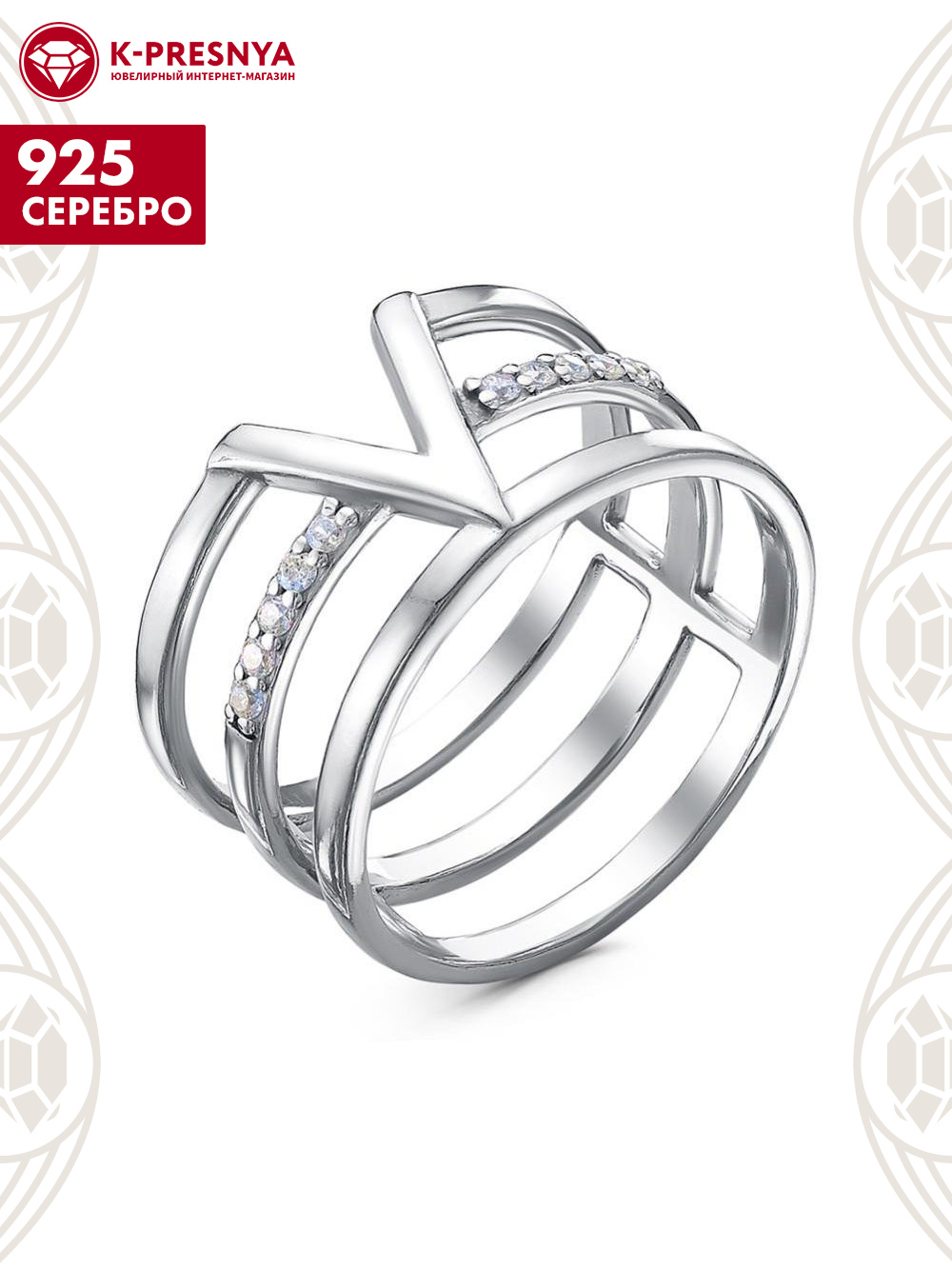 Кольцо серебро 925 пробы, покрытие - родирование, вставка - фианит (недрагоценный камень)