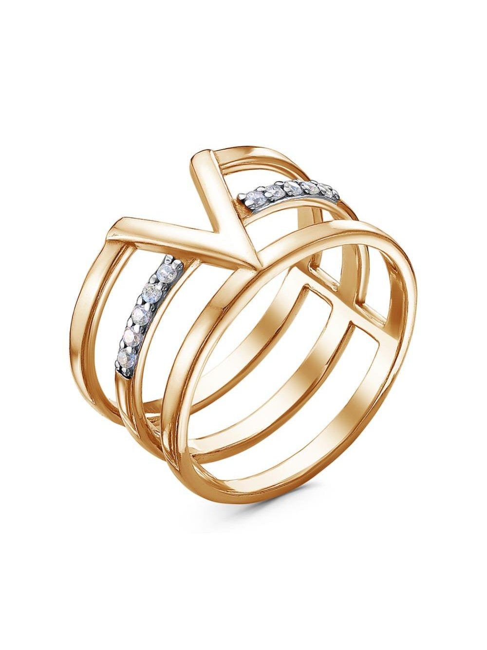 Кольцо серебро 925 пробы, покрытие - золочение, выборочное родирование, вставка - фианит (недрагоценный камень)