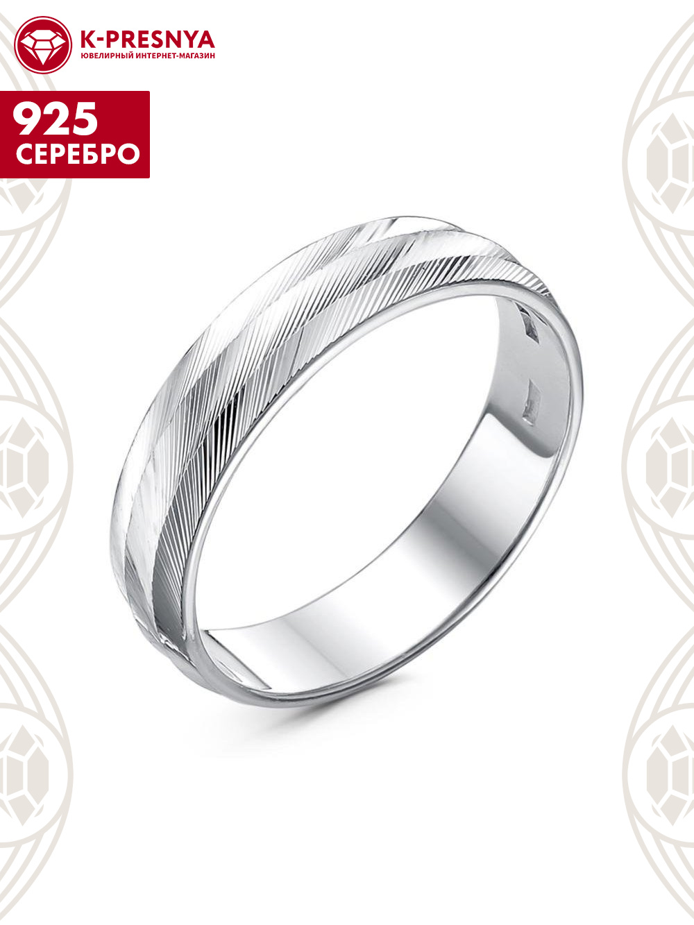 Кольцо серебро 925 пробы, без покрытия, отделка - алмазная грань, без вставок