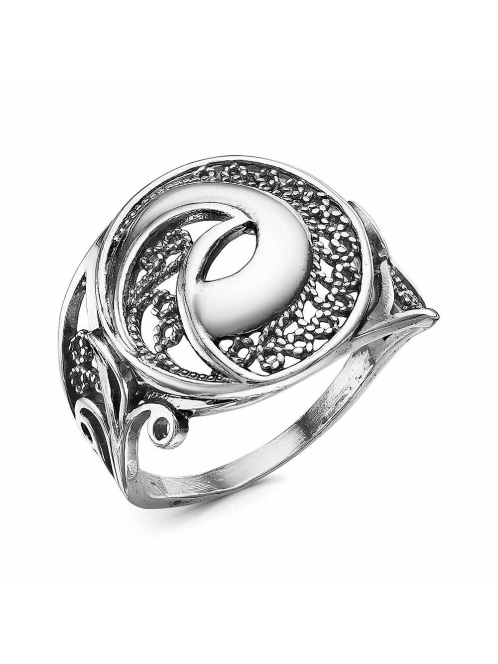Кольцо бижутерия, покрытие - серебрение с оксидированием, без вставок
