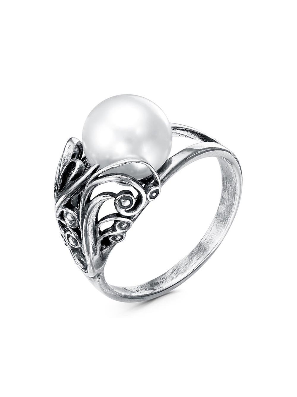 Кольцо бижутерия, покрытие - серебрение с оксидированием, вставка - культивированный жемчуг
