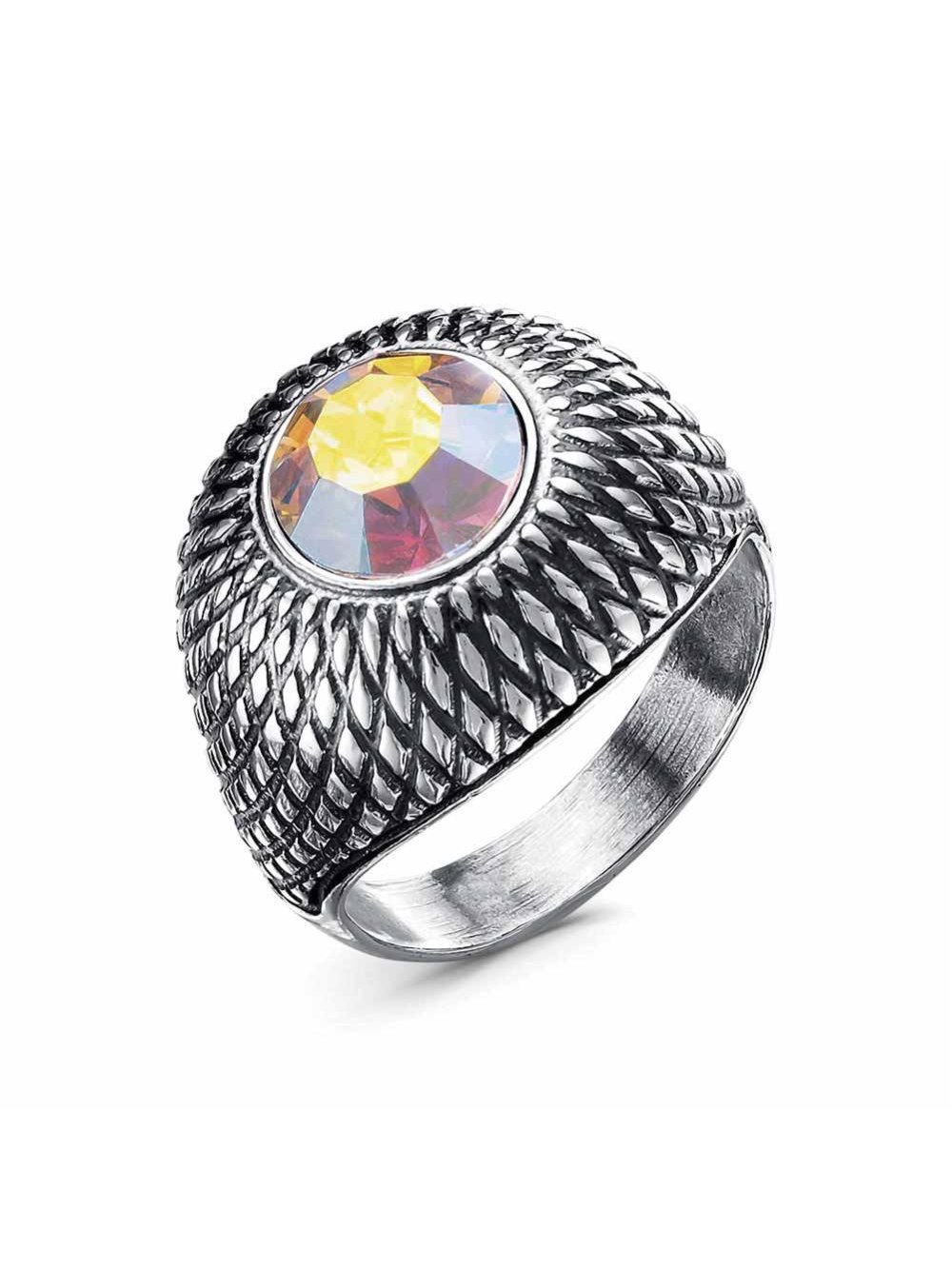 Кольцо бижутерия, покрытие - серебрение с оксидированием, вставка - стекло ювелирное preciosa
