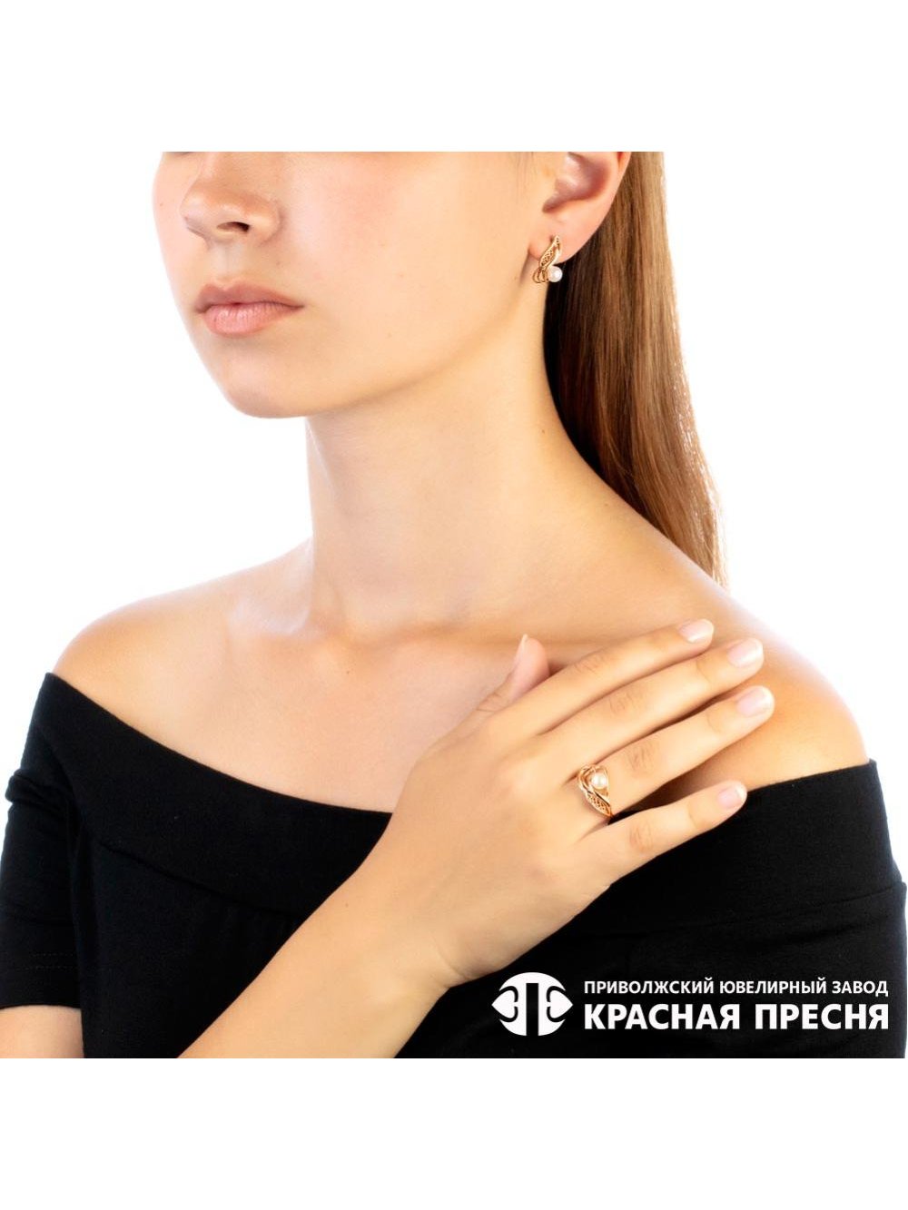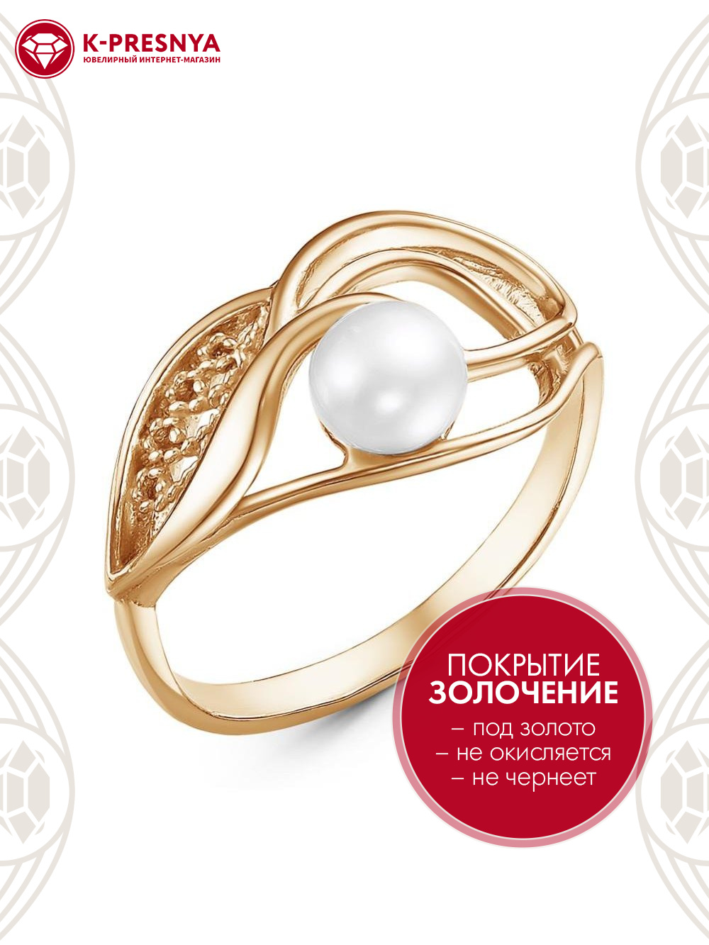 Кольцо серебро 925 пробы, покрытие - золочение, вставка - культивированный жемчуг