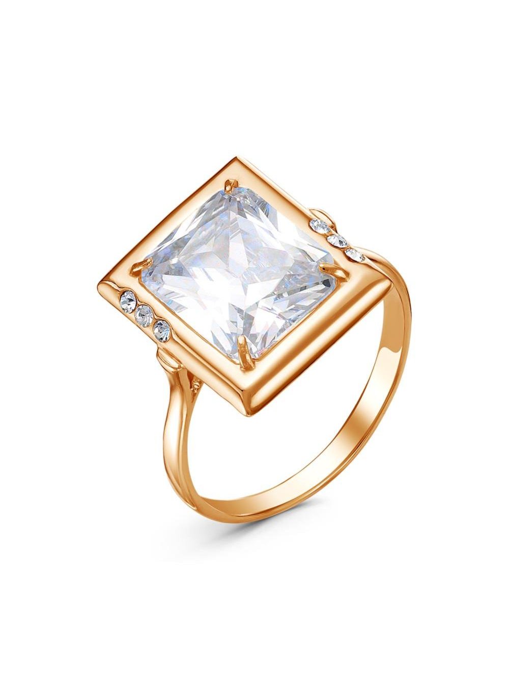 Кольцо бижутерия, покрытие - золочение, вставка - стекло ювелирное preciosa, фианит (недрагоценный камень)
