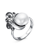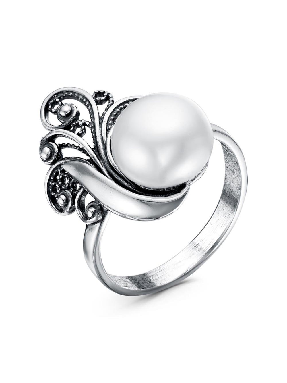 Кольцо серебро 925 пробы, покрытие - оксидирование, вставка - культивированный жемчуг
