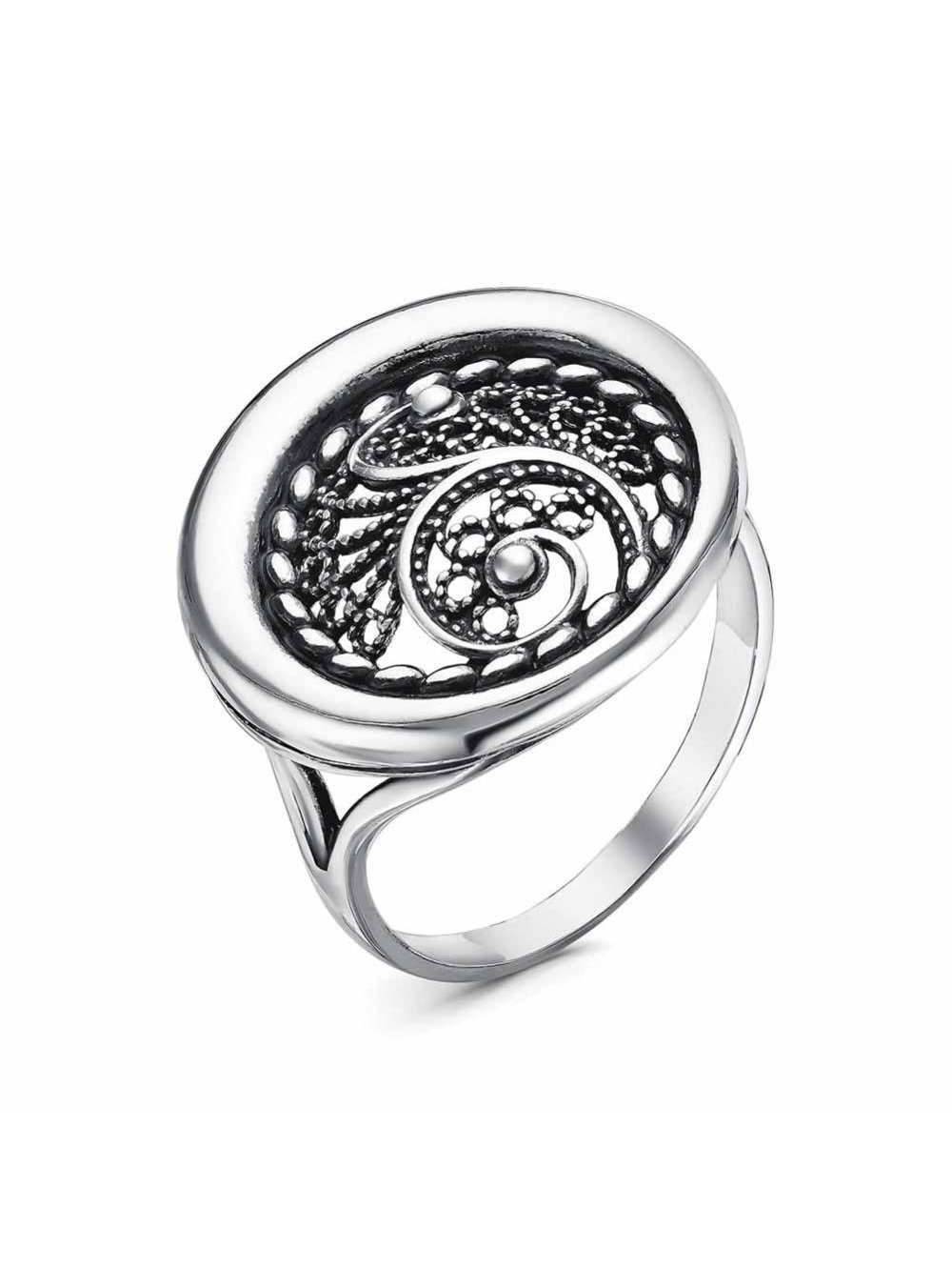 Кольцо серебро 925 пробы, покрытие - оксидирование, без вставок