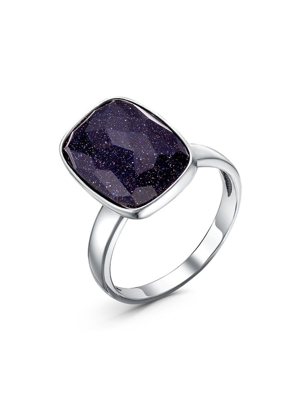 Кольцо бижутерия, покрытие - серебрение с оксидированием, вставка - искусственный авантюрин