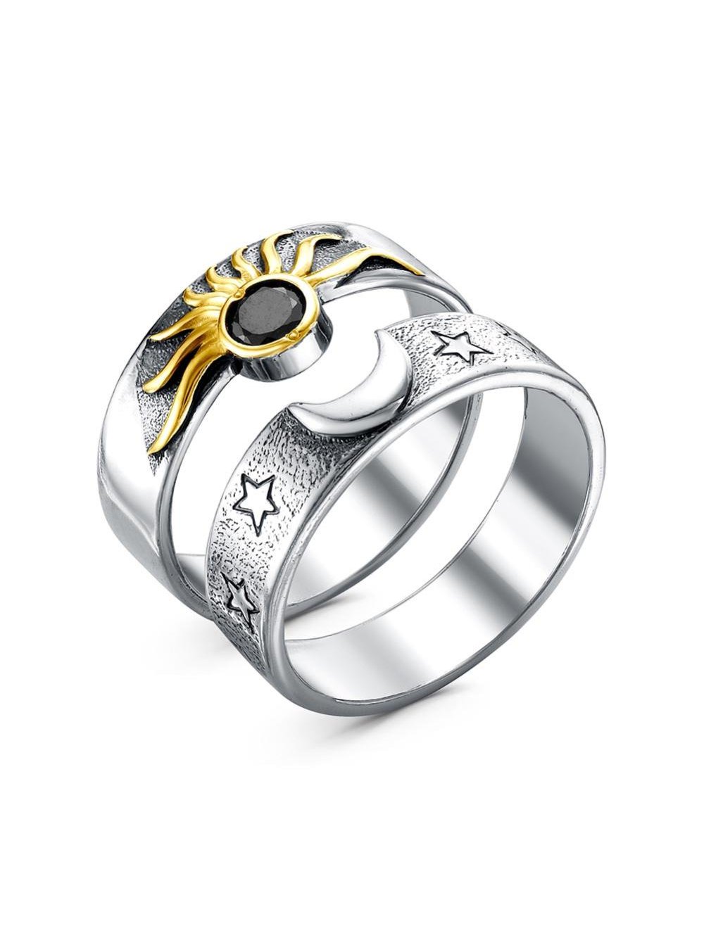 На одном кольце изображено "Солнце", которое считается символом мужского начала - одна из самых сильнейших энергий. Олицетворяет активность, движение, жизнь, совершенствование. Солнечная энергия придает силу, направляет в сторону реализации идей и достижения целей. Так же принято считать символом нескончаемой жизни, чистой и светлой души с положительной энергетикой.