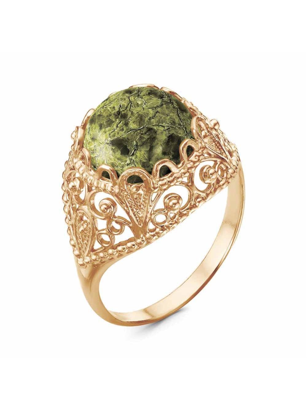 Кольцо бижутерия, покрытие - золочение, вставка - змеевик