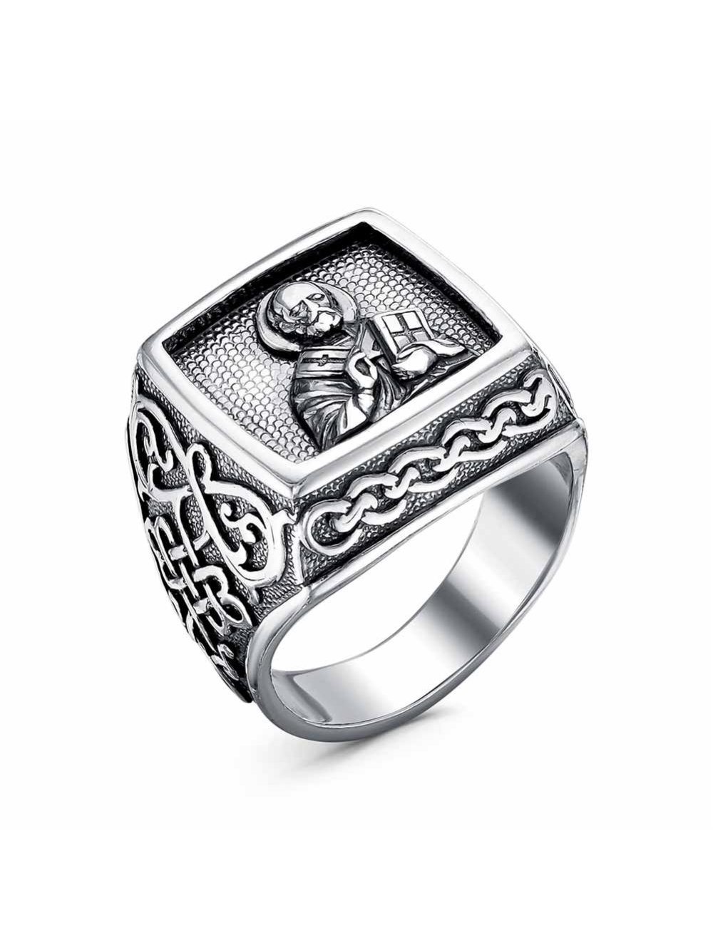 Кольцо "николай чудотворец" бижутерия, покрытие - серебрение с оксидированием, без вставок