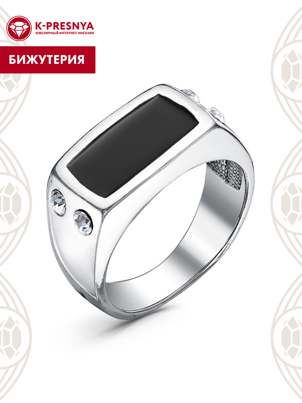 Кольцо бижутерия, покрытие - серебрение с оксидированием, отделка - эмаль, вставка - стекло ювелирное preciosa