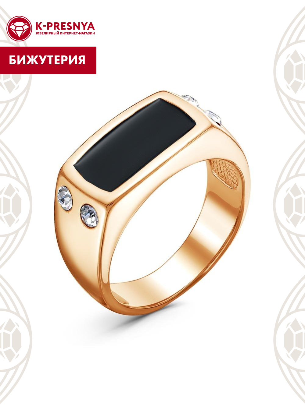 Кольцо бижутерия, покрытие - золочение, отделка - эмаль, вставка - стекло ювелирное preciosa