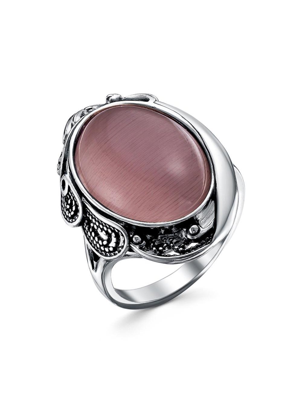 Кольцо серебро 925 пробы, покрытие - оксидирование, вставка - искусственный кошачий глаз