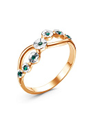 Кольцо бижутерия, покрытие - золочение, отделка - алмазная грань, вставка - стекло ювелирное preciosa