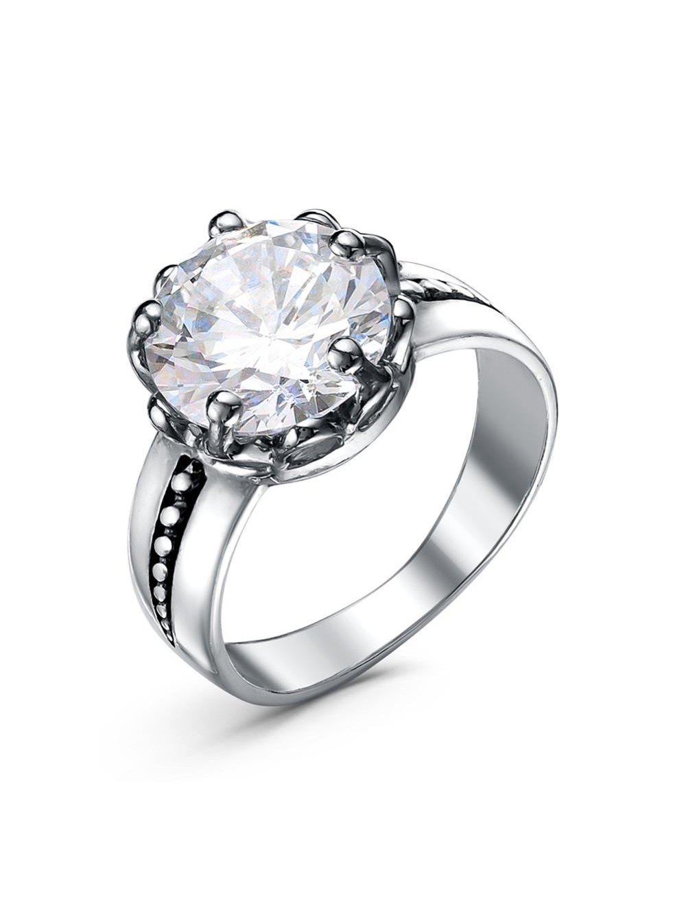 Кольцо бижутерия, покрытие - серебрение с оксидированием, вставка - фианит (недрагоценный камень)