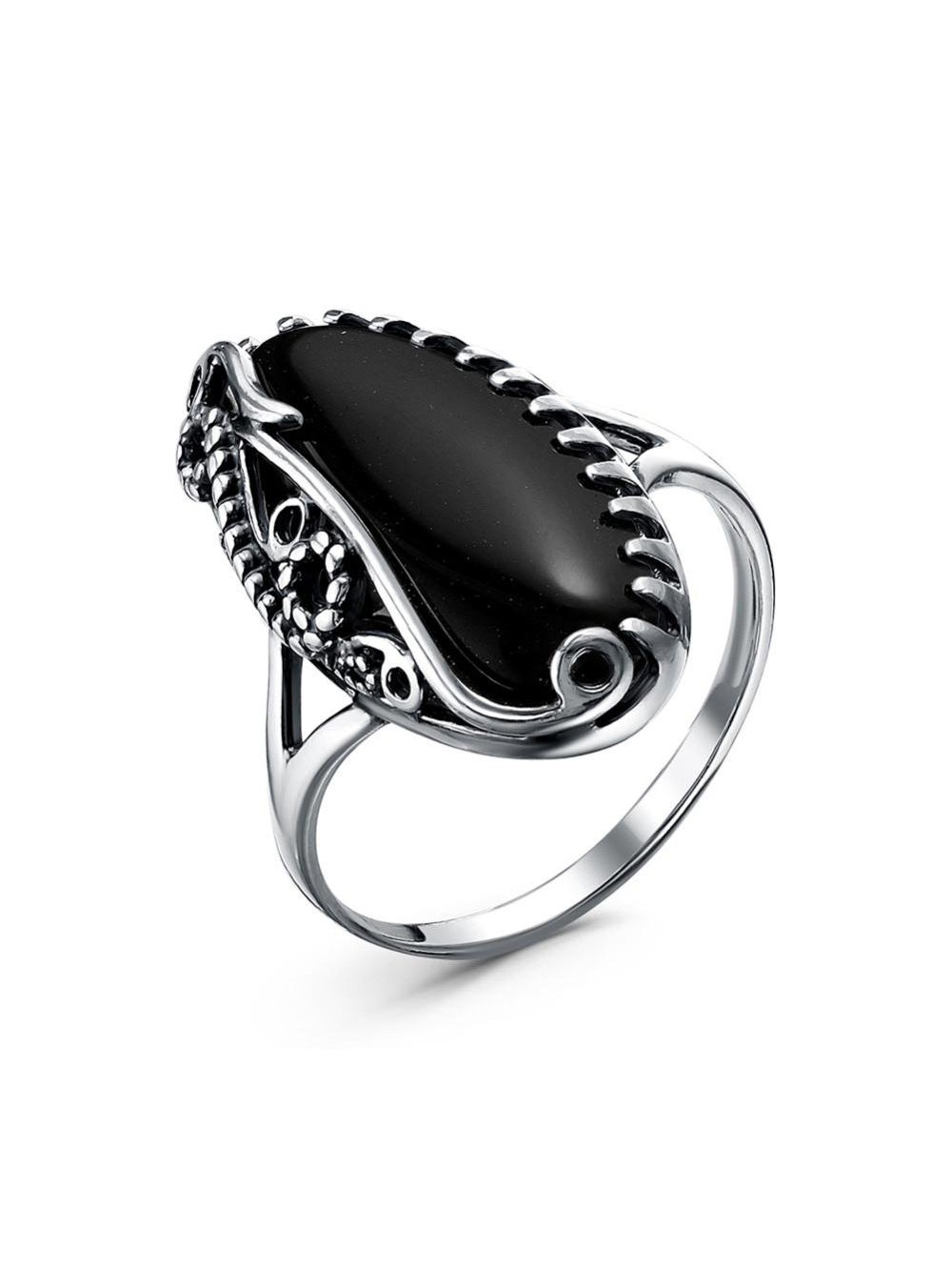 Кольцо бижутерия, покрытие - серебрение с оксидированием, вставка - искусственный агат черный