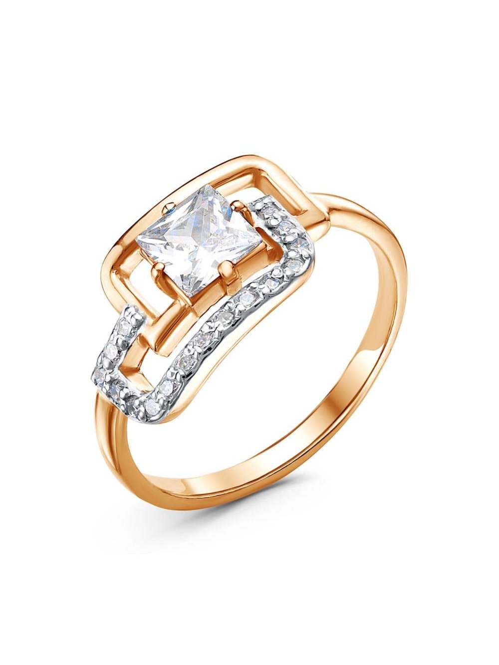 Кольцо серебро 925 пробы, покрытие - золочение, выборочное родирование, вставка - фианит (недрагоценный камень)