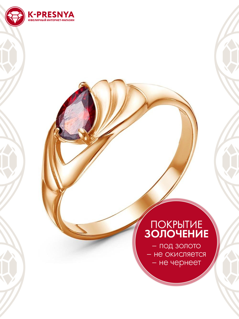 Кольцо серебро 925 пробы, покрытие - золочение, вставка - фианит (недрагоценный камень)