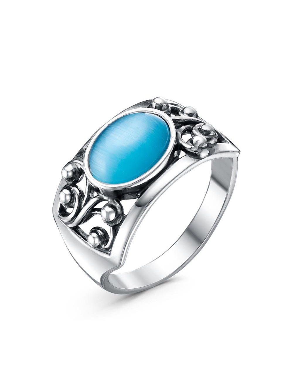 Кольцо бижутерия, покрытие - серебрение с оксидированием, вставка - искусственный кошачий глаз