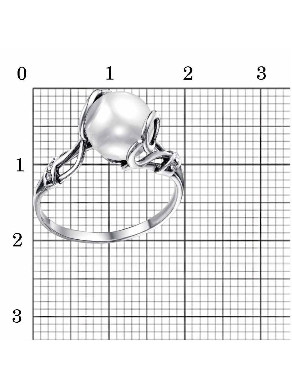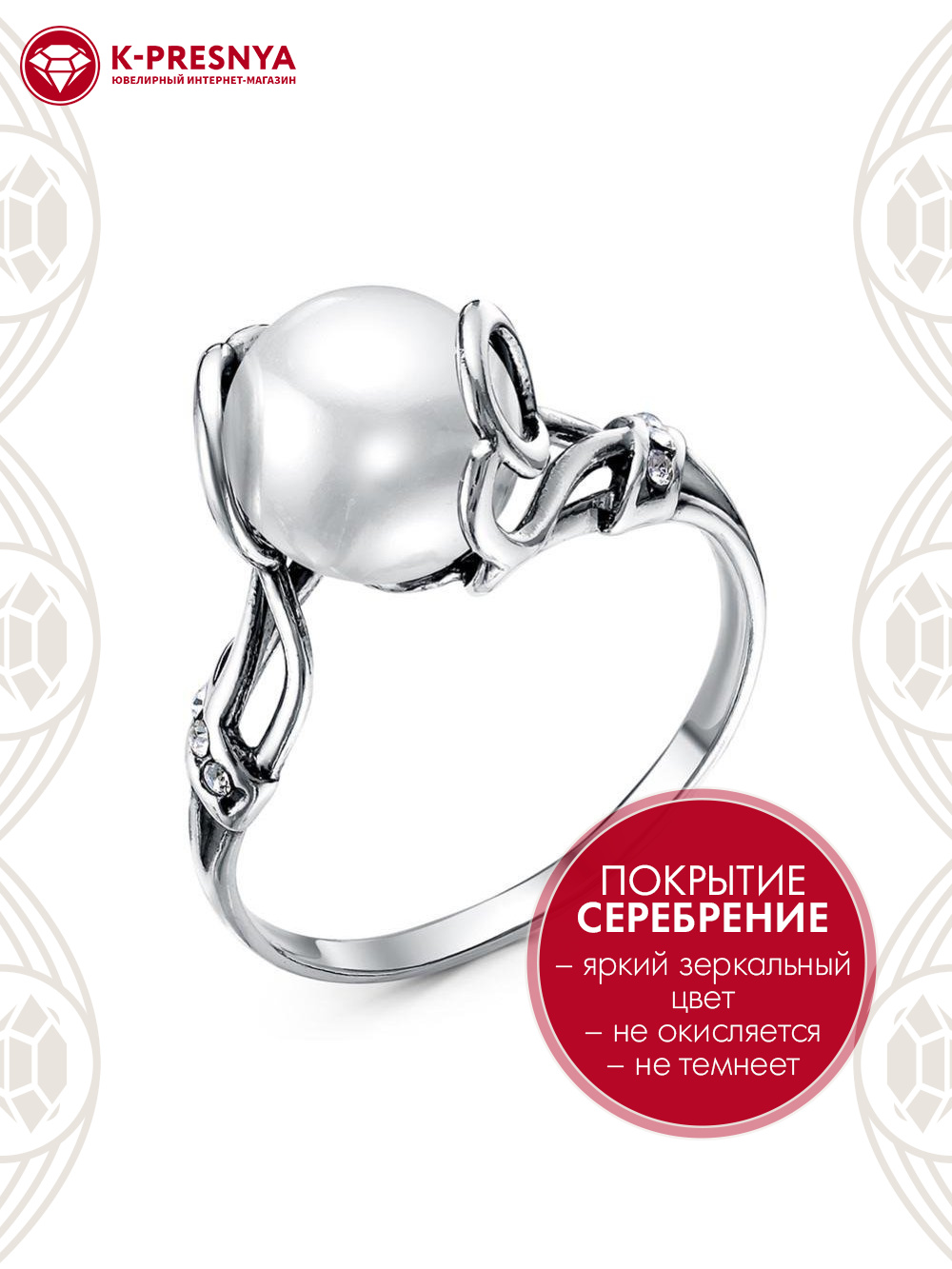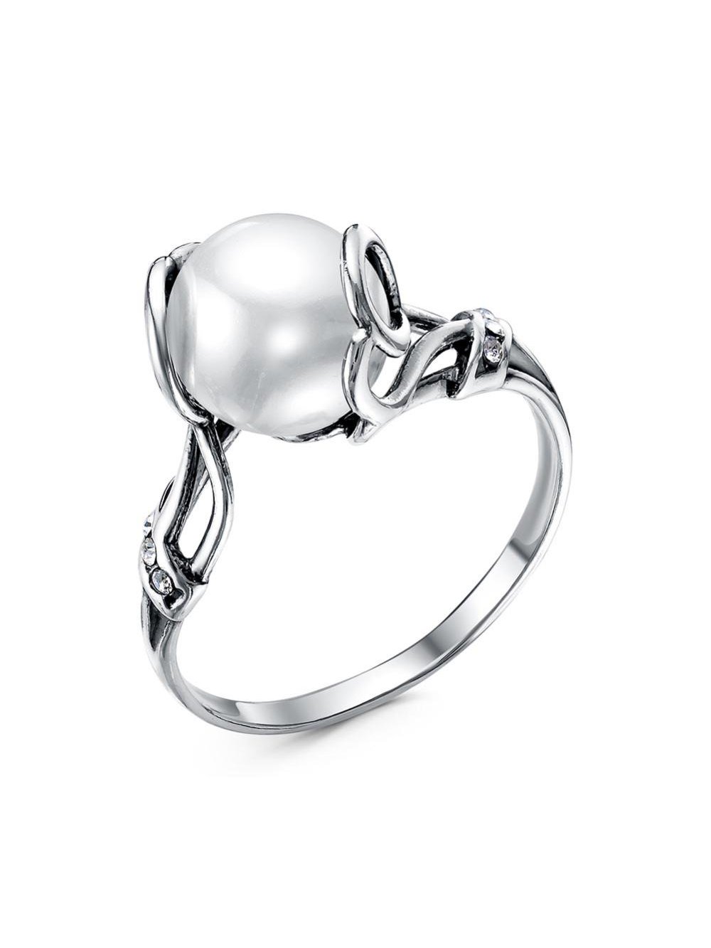 Кольцо бижутерия, покрытие - серебрение с оксидированием, вставка - имитация жемчуга, стекло ювелирное preciosa