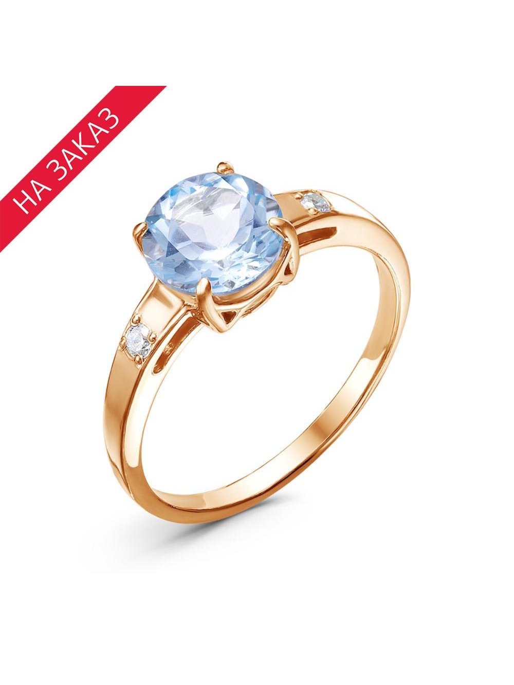 Кольцо серебро 925 пробы, покрытие - золочение, вставка - голубой топаз (полудрагоценный камень), фианит (недрагоценный камень)