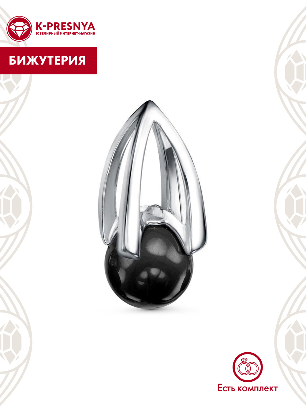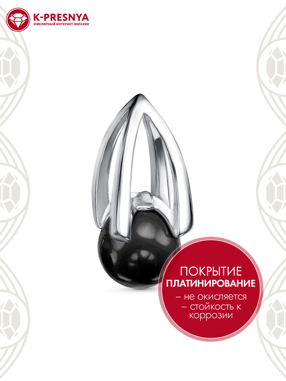 Подвеска бижутерия, покрытие - платинирование, вставка - имитация жемчуга