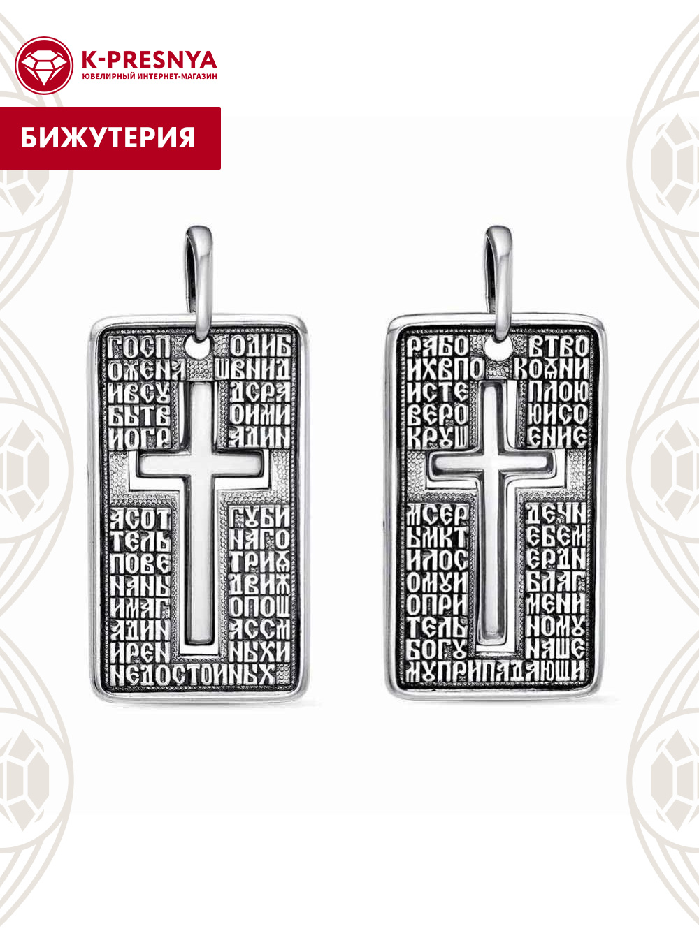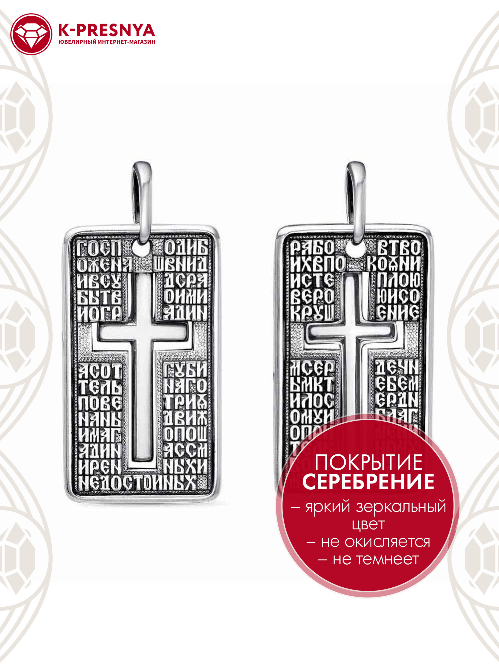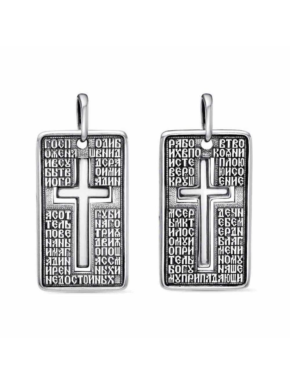 Подвеска выполнена из цветного металла на которой расположен крест и молитва. "Молитва во время распростронения вредоносного поветрия"