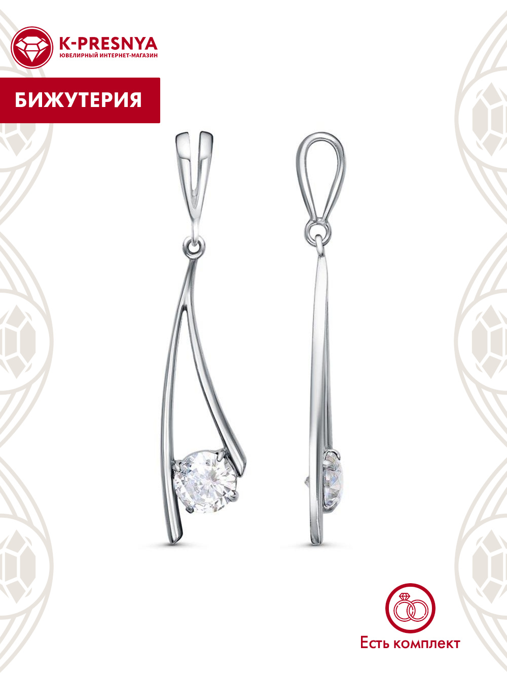 Подвеска бижутерия, покрытие - платинирование, вставка - фианит (недрагоценный камень)