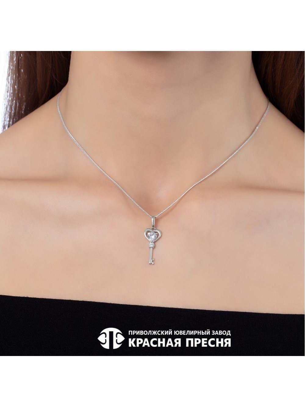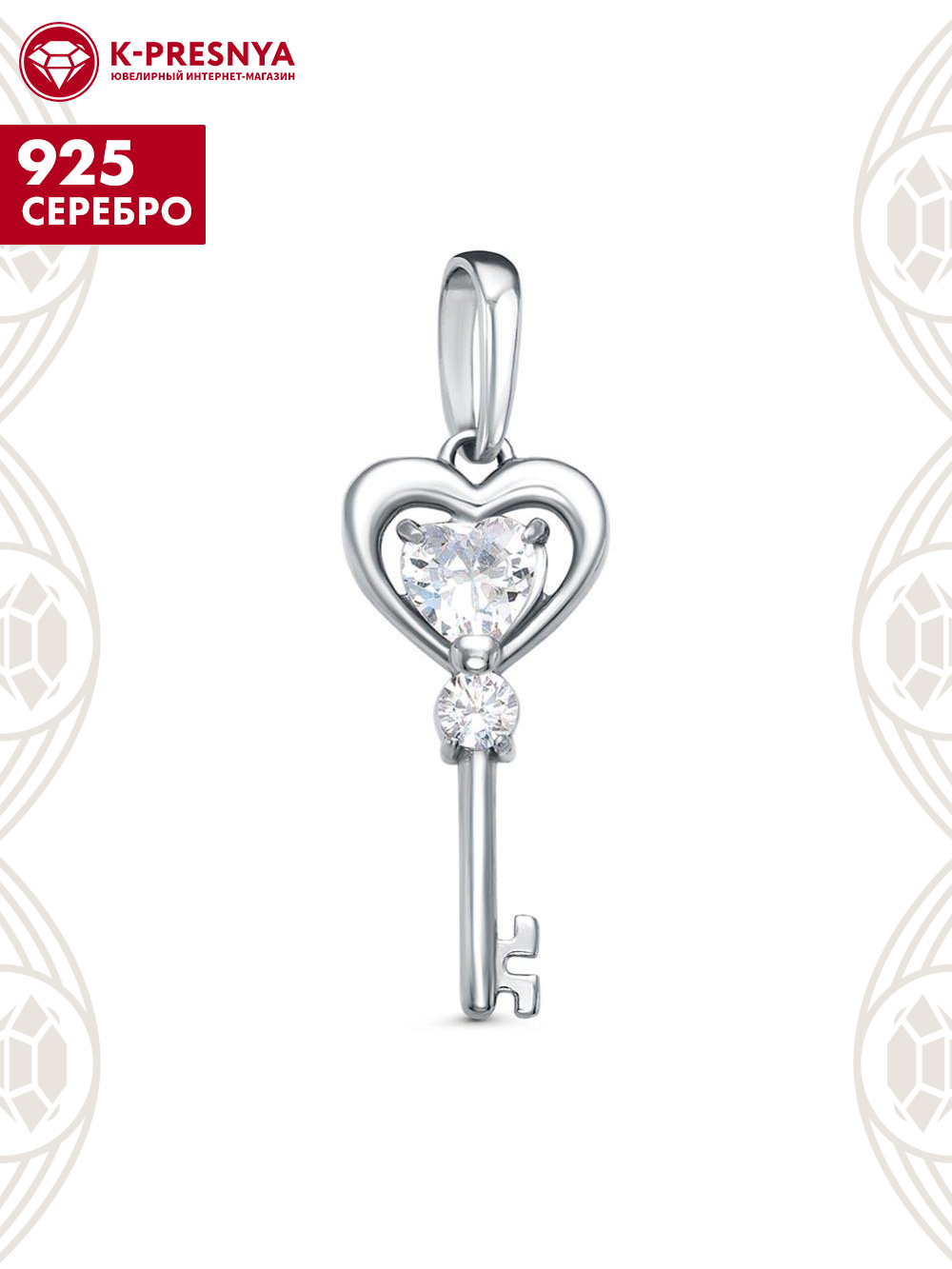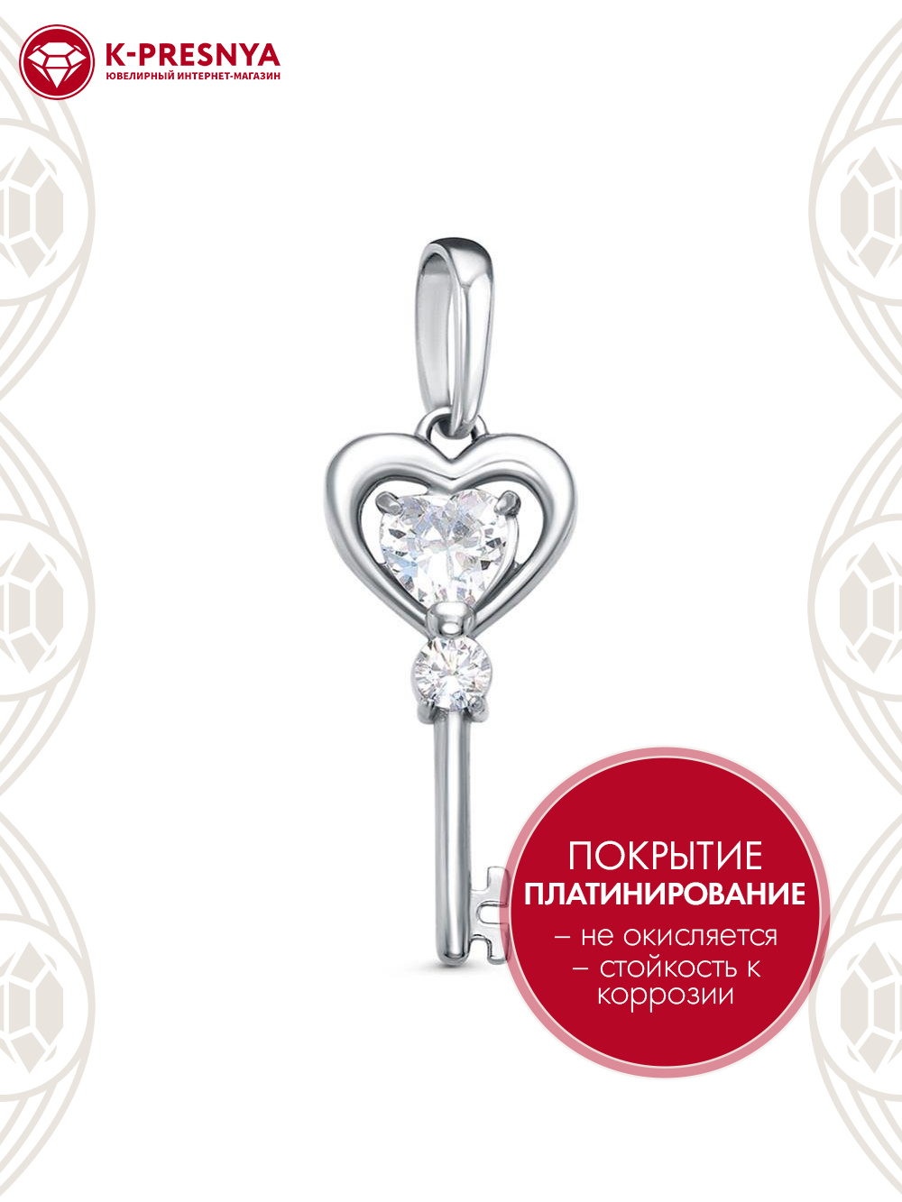Подвеска серебро 925 пробы, покрытие - платинирование, вставка - фианит (недрагоценный камень)
