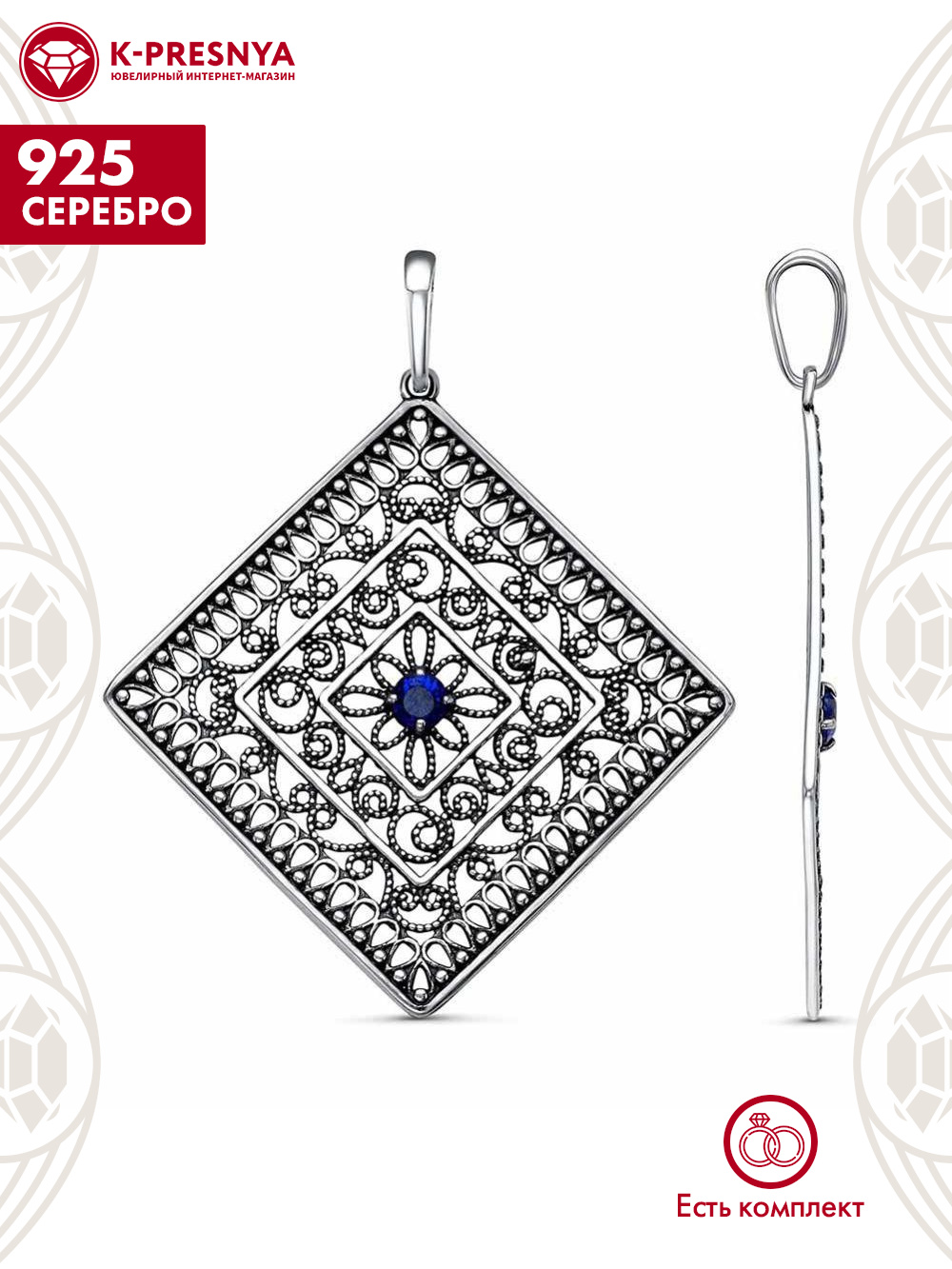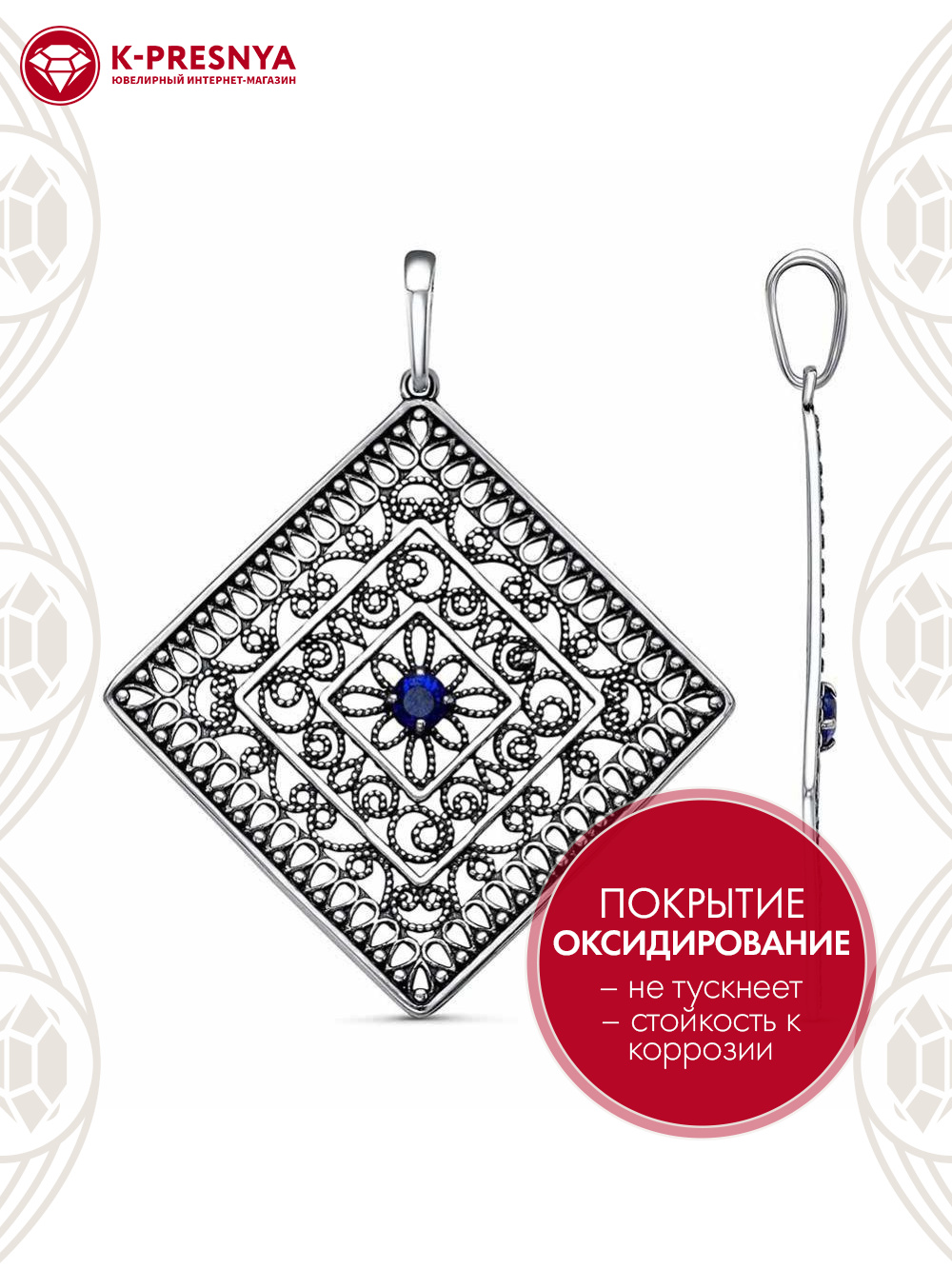 Подвеска серебро 925 пробы, покрытие - оксидирование, вставка - искусственная шпинель