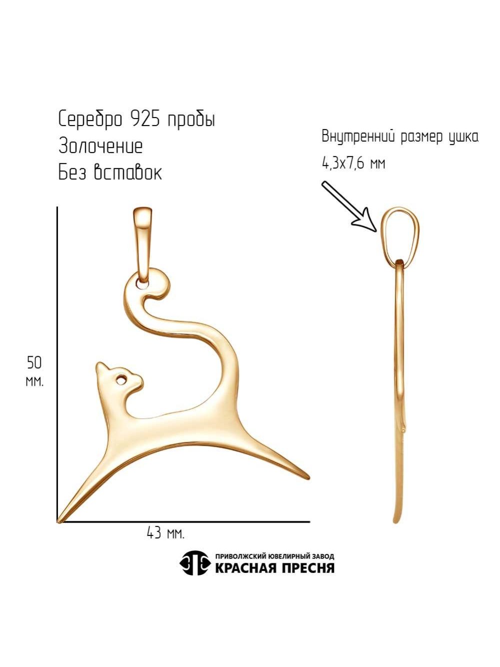 Подвеска серебро 925 пробы, покрытие - золочение, без вставок
