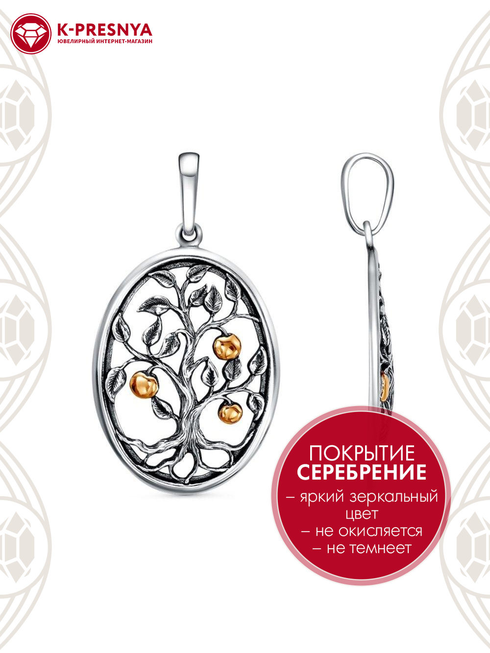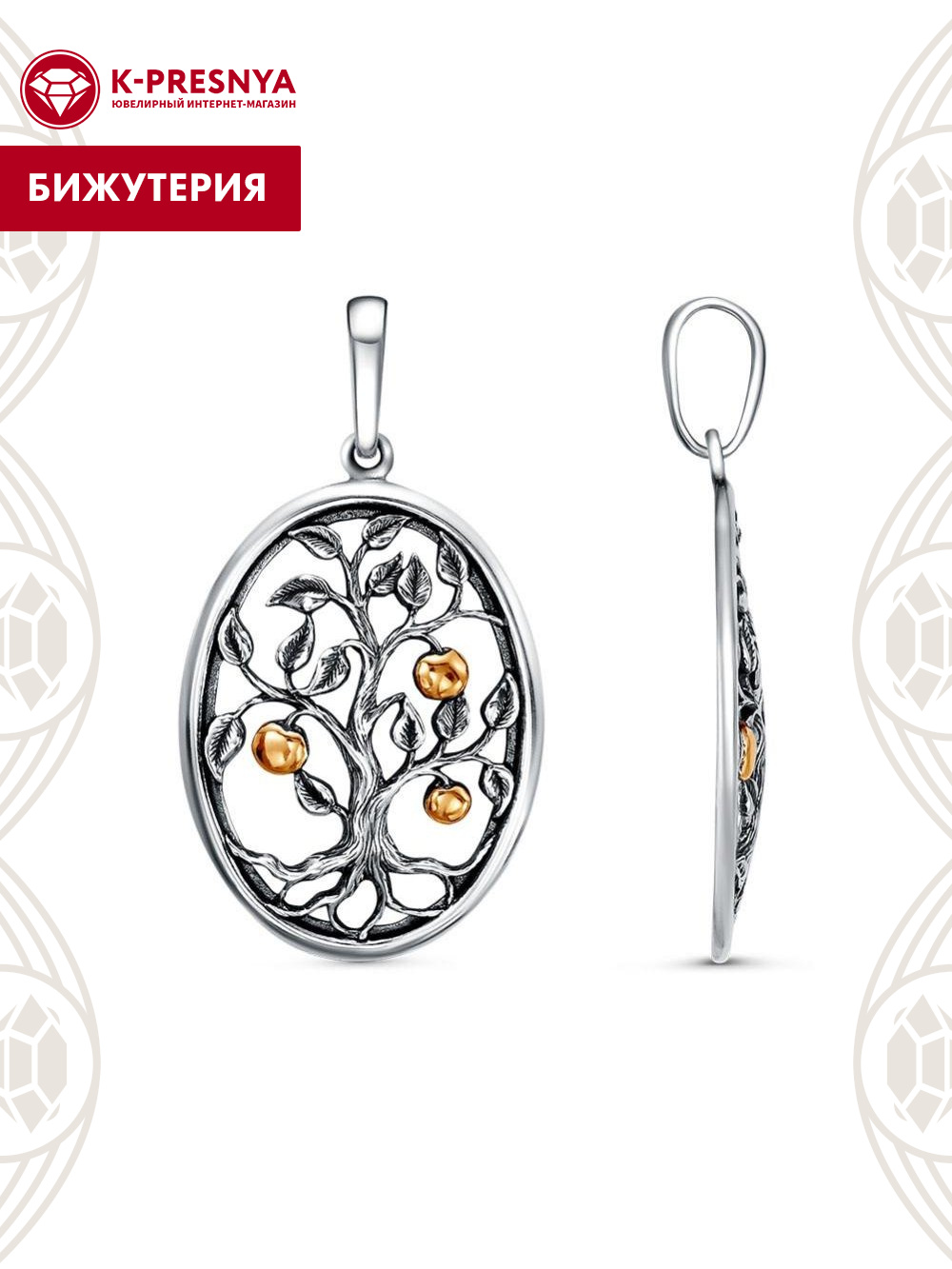 Подвеска бижутерия, покрытие - серебрение с оксидированием, выборочное золочение, без вставок