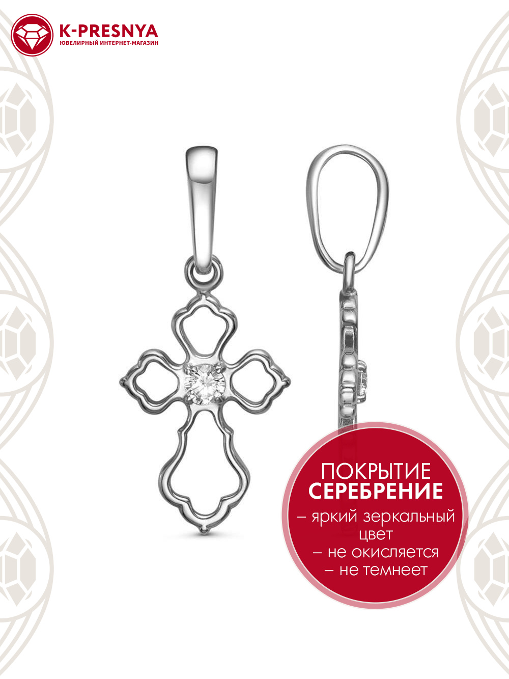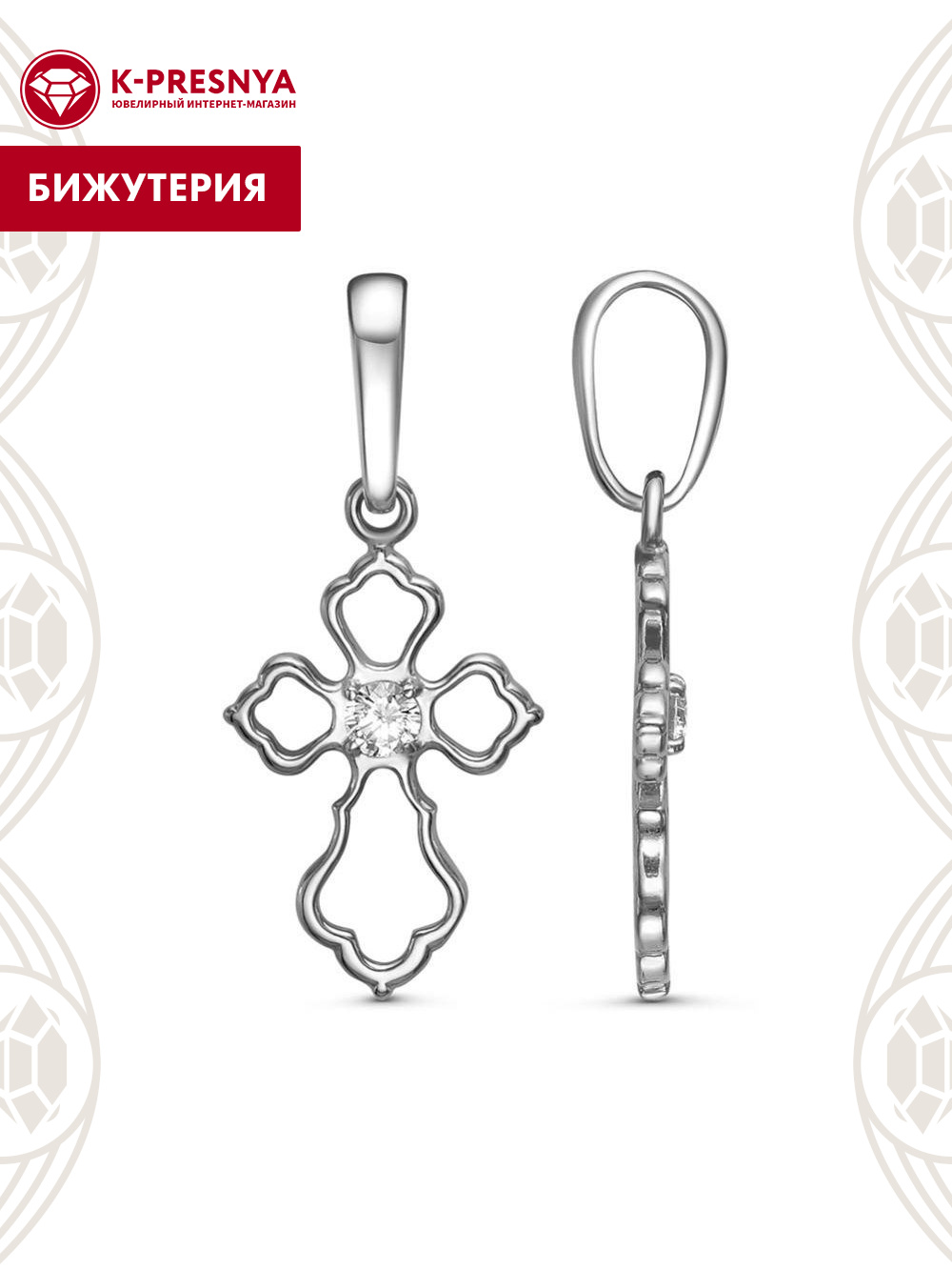 Подвеска бижутерия, покрытие - серебрение с оксидированием, вставка - фианит (недрагоценный камень)