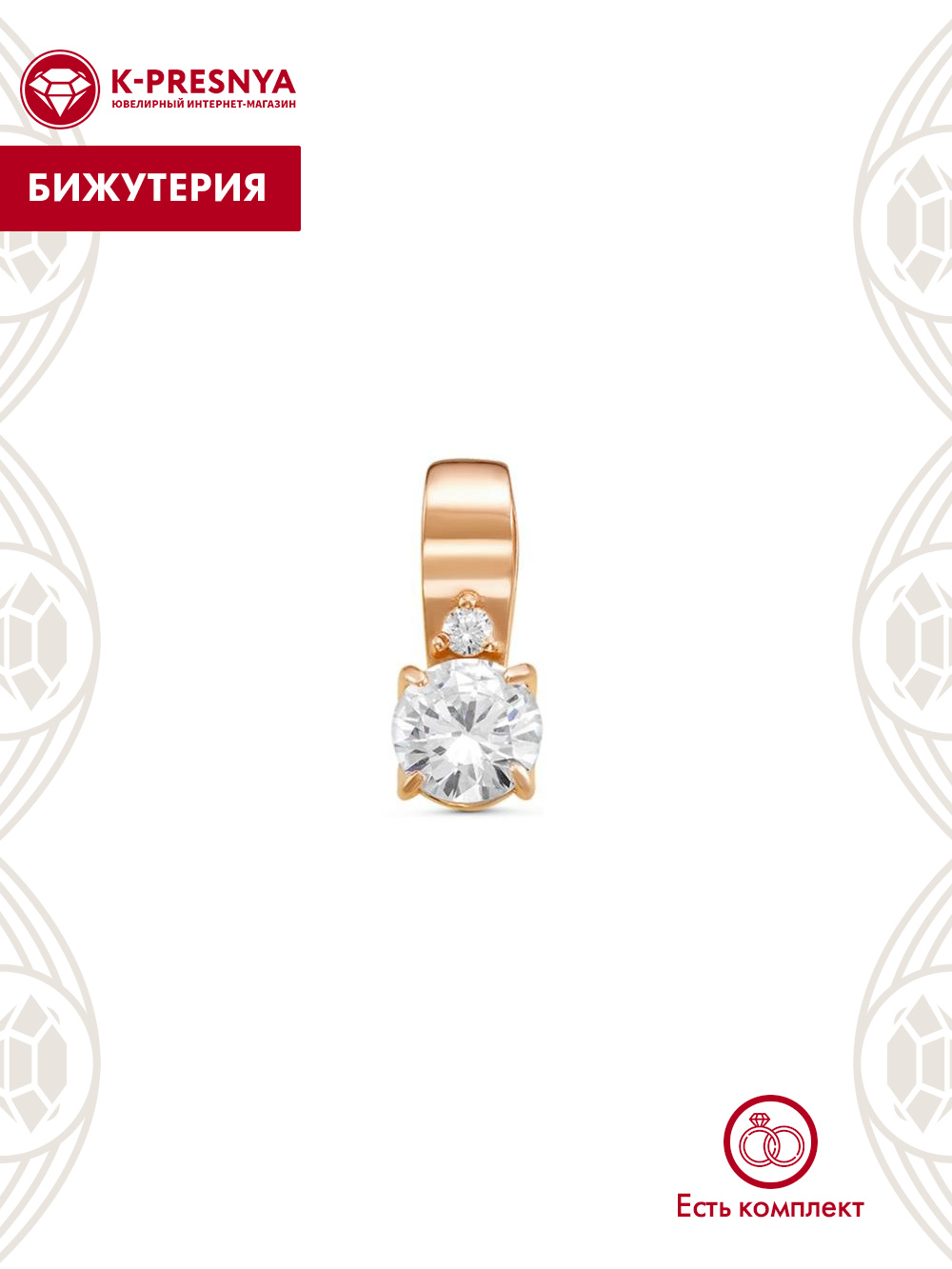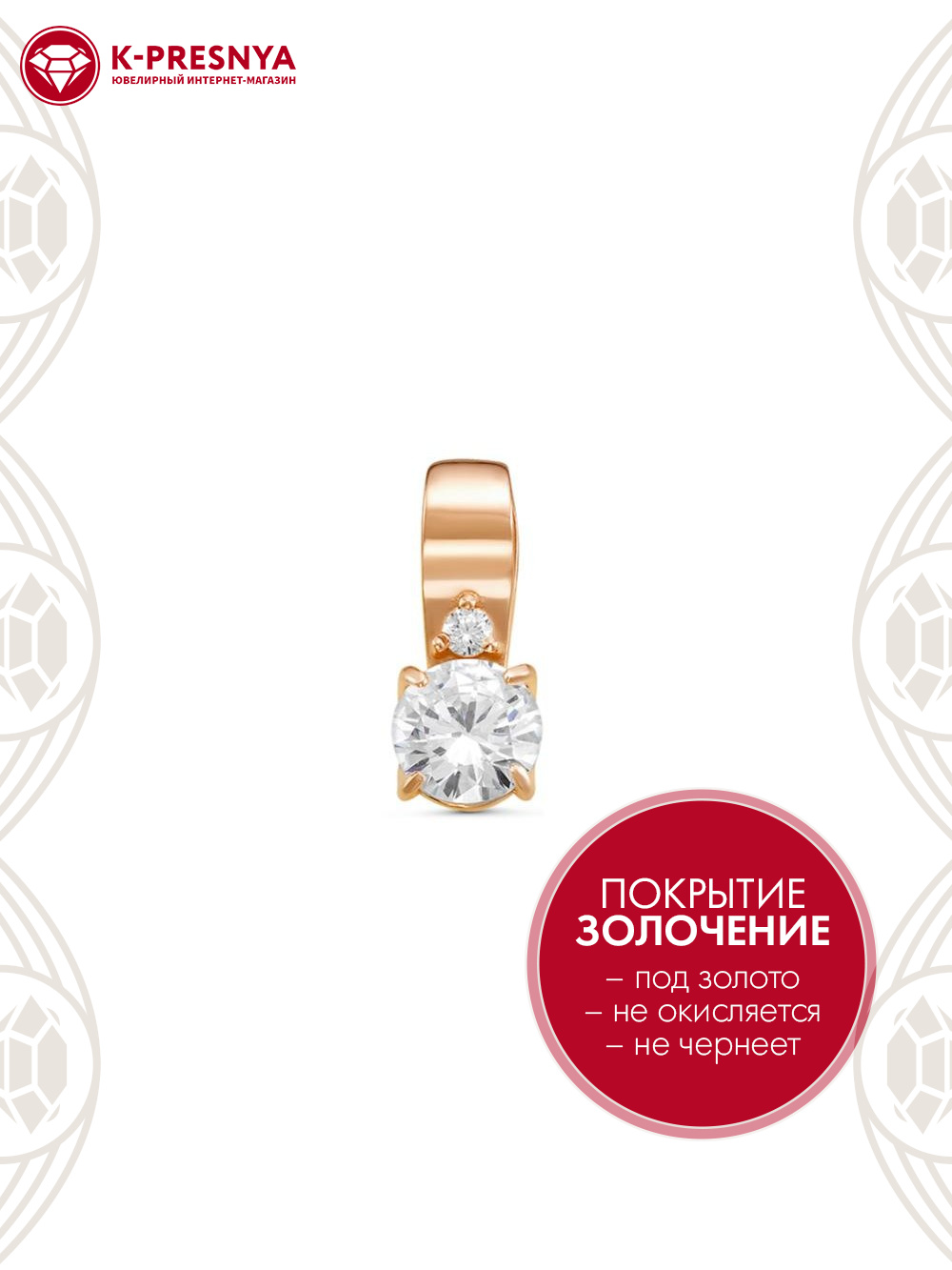 Подвеска бижутерия, покрытие - золочение, вставка - фианит (недрагоценный камень)