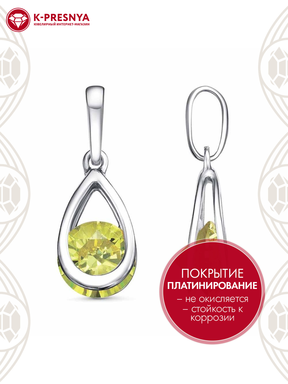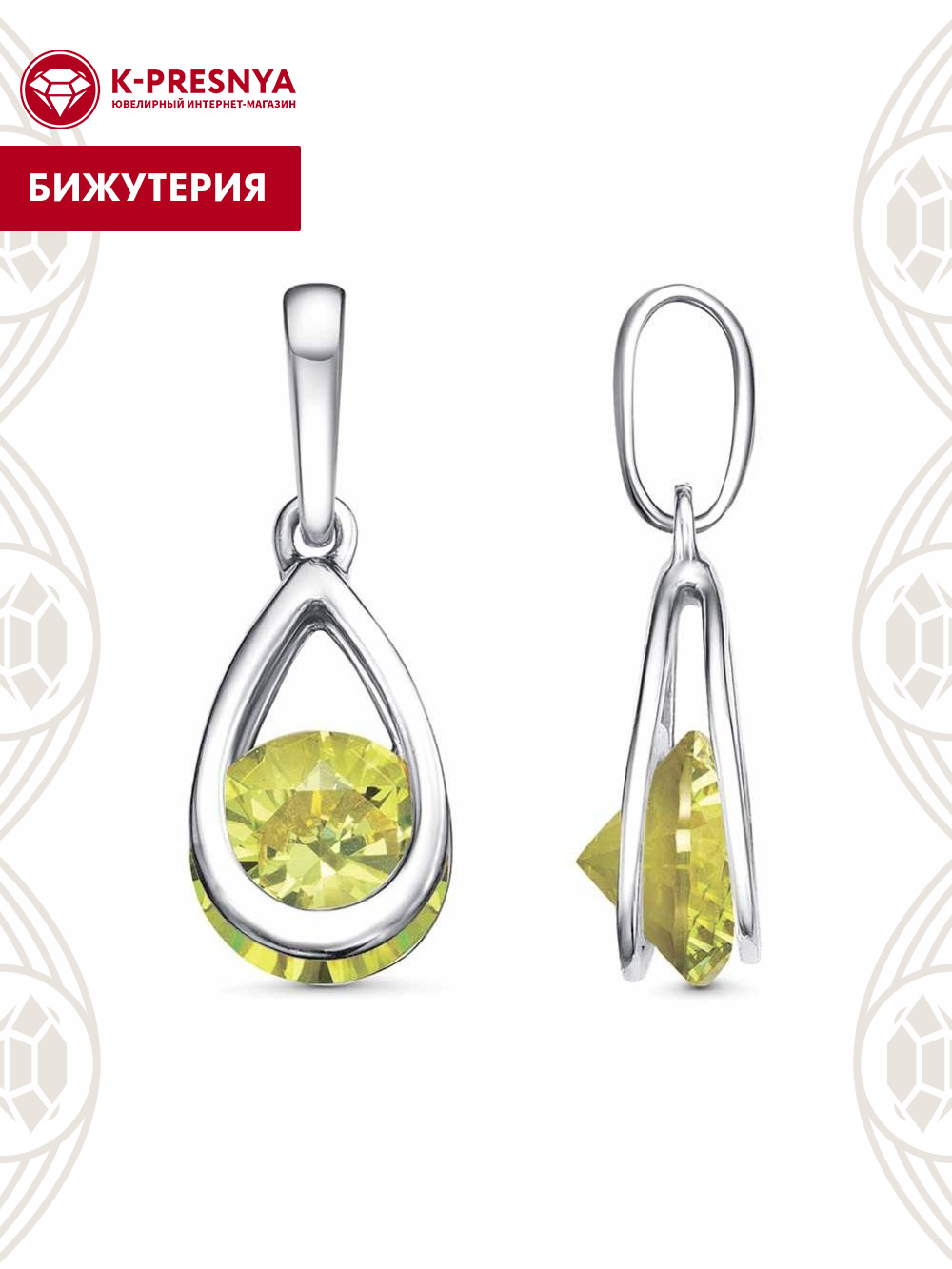 Подвеска бижутерия, покрытие - платинирование, вставка - фианит (недрагоценный камень)