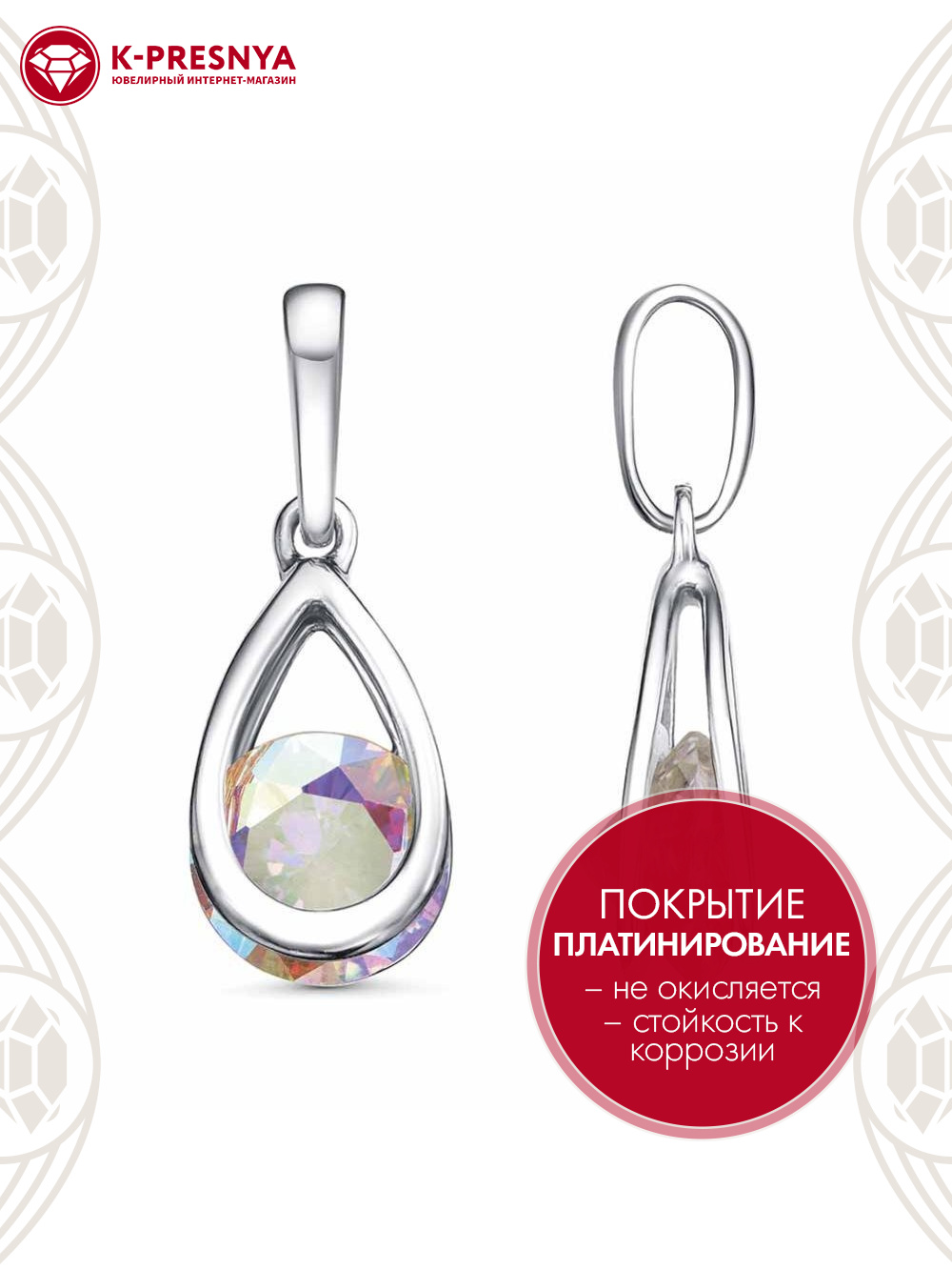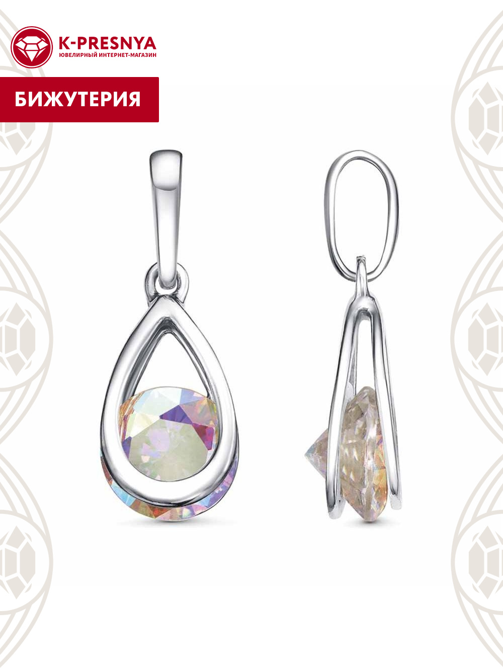Подвеска бижутерия, покрытие - платинирование, вставка - фианит (недрагоценный камень)